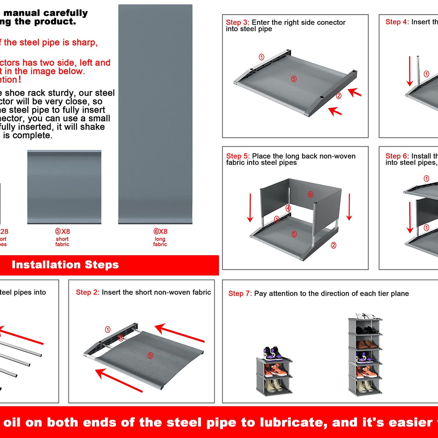 - MADSOUKY shoe rack easy to assemble, no tools are required, put a little oil on both ends of the steel pipe to lubricate, and it's easier to put it into connector, quickly and brings you great convenience