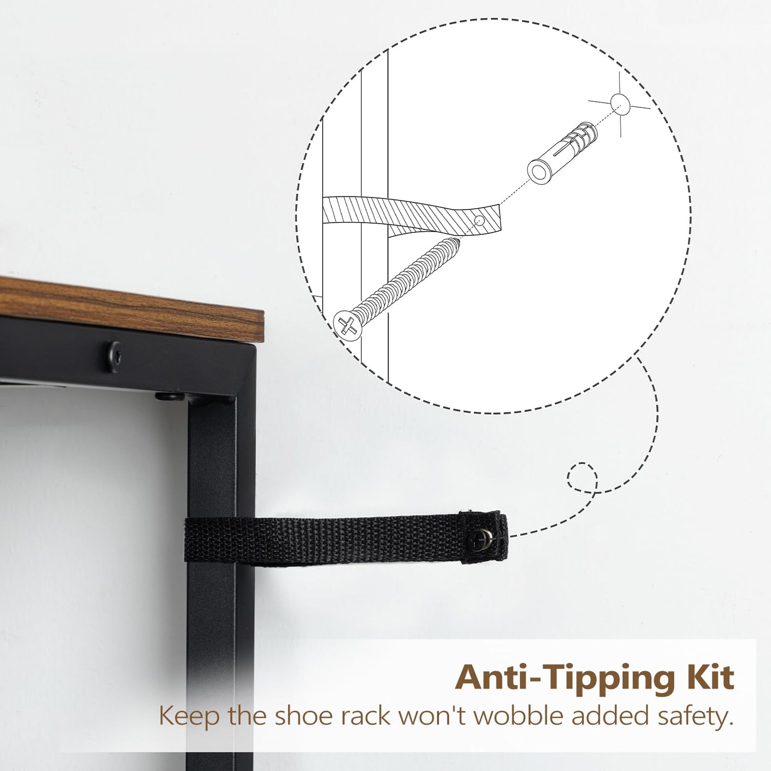 - Stable and Durable: Made of thickened metal tube, 9-layer metal mesh shelves and quality particleboard panel, the shoe rack offers great load-bearing capacity (each mesh shelf supports up to 44 lb, and the top panel bears 33 lb). It comes with adjustable feet for stability on uneven ground without scratching the floor. An anti-tipping device is also included for added safety