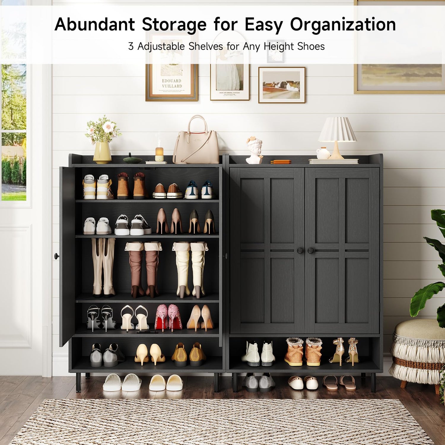 ONBRILL Shoe Cabinet with Cross Molding Doors, 6-Tier Shoe Storage Cabinet with 3 Adjustable Shelves and Metal Legs, 45'' Tall Shoes Rack Organizer Cabinet for Entryway, Front Door, Black