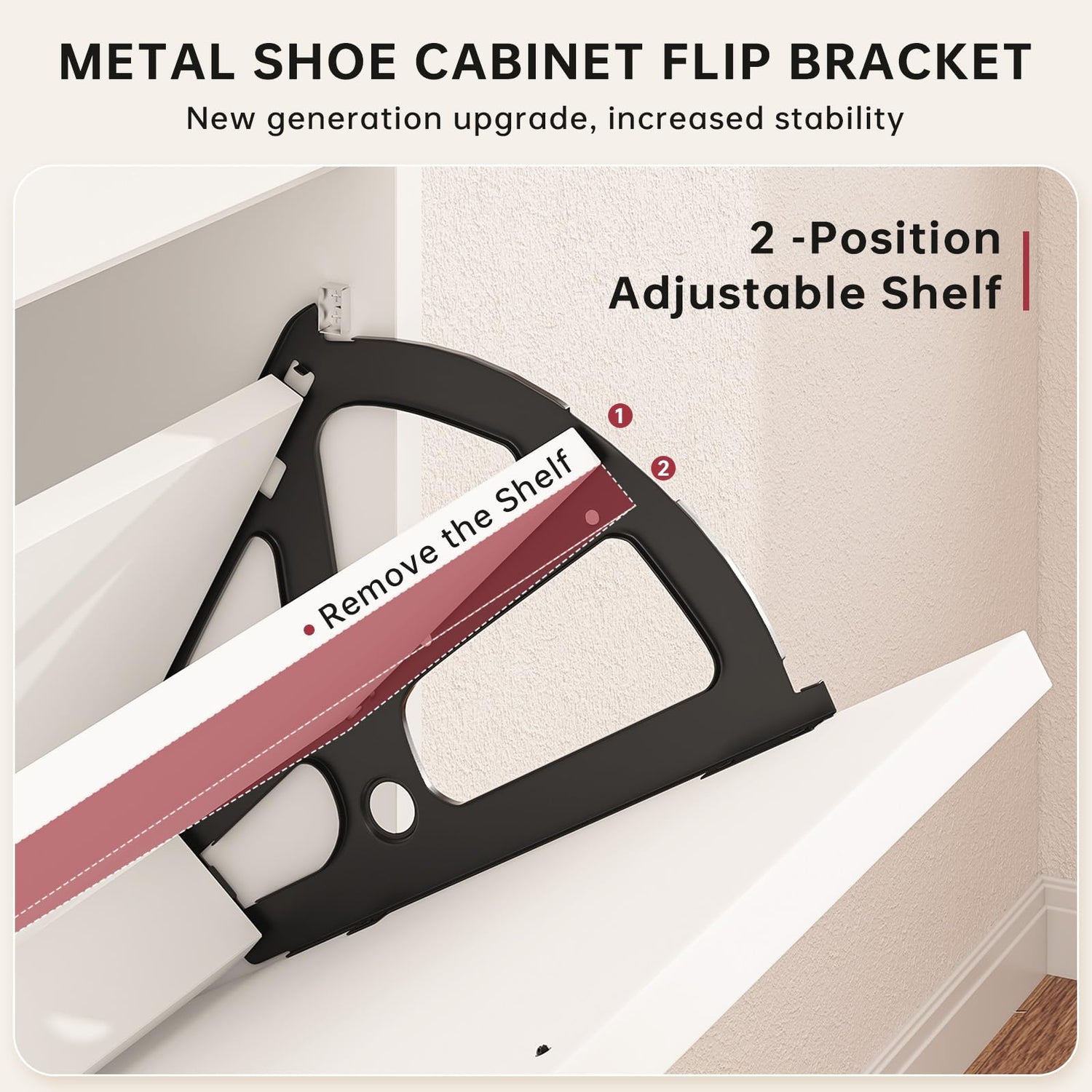 - Adjustable Flip Bracket: There are 2 adjustable brackets with 2 heights in each flip drawer allowing users to choose the height according to the size or style of your shoes. Our shoe organizer is practical and humanized