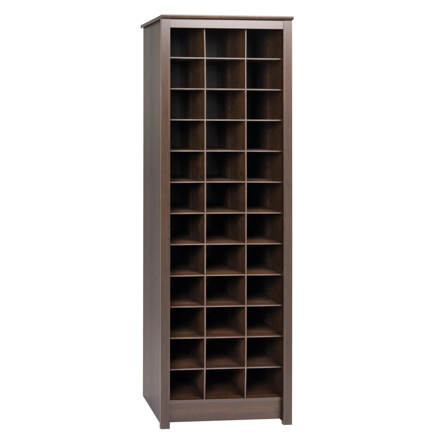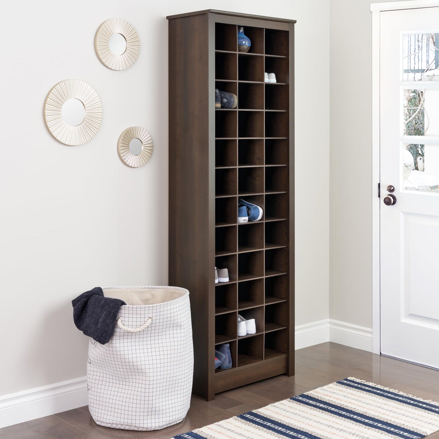 Prepac Elegant Brown Shoe Storage Cabinet, Space-Saving Solution with Cubbies for 36 Pairs, 13"D x 23.5" W x 72.5" H