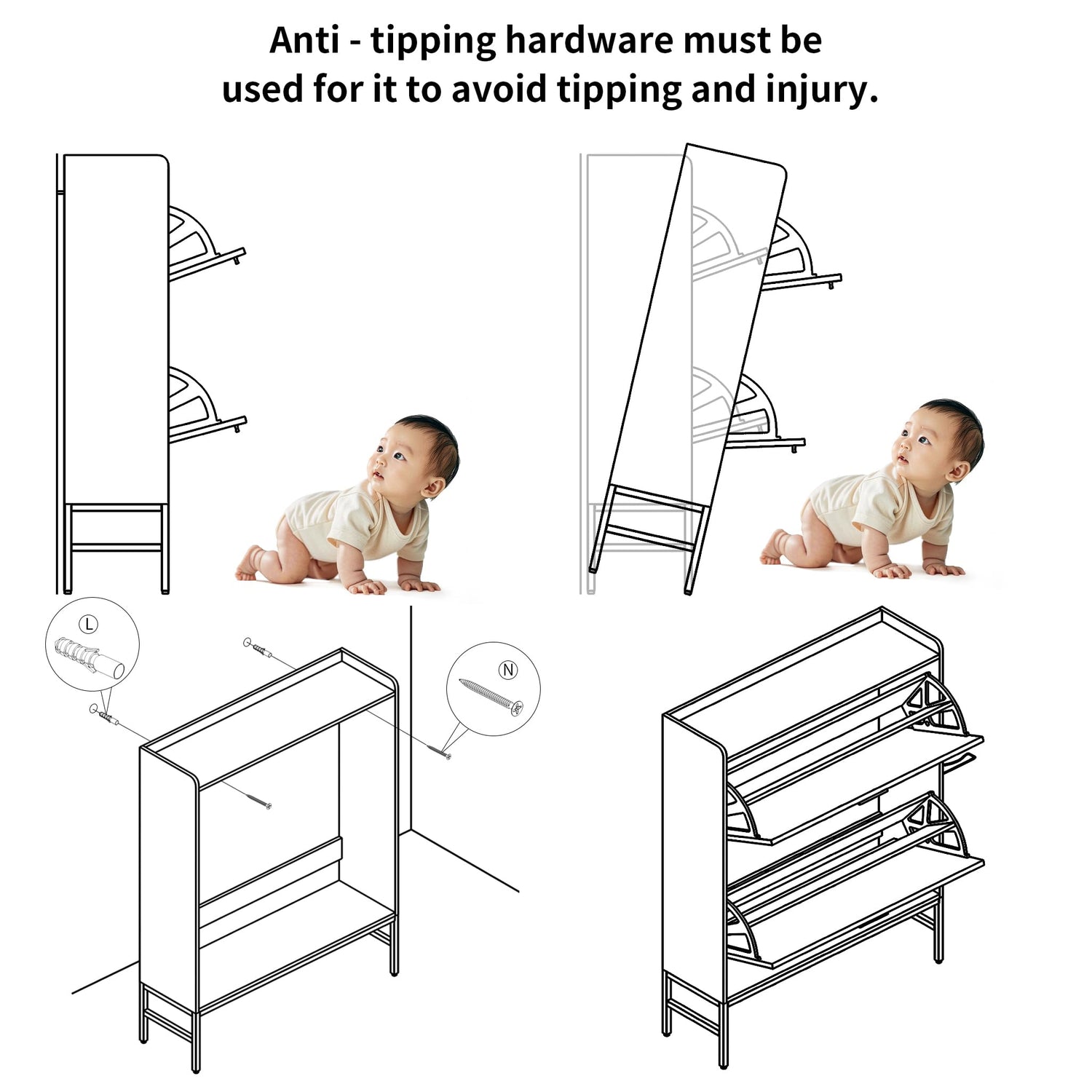 • 【Anti-tip Kits】Please remember to install the anti-tilting tool on the wall for better stability and avoid tipping and injury. The narrow shoe cabinet with simple and easy to understand instructions. Any questions,please feel free to contact us