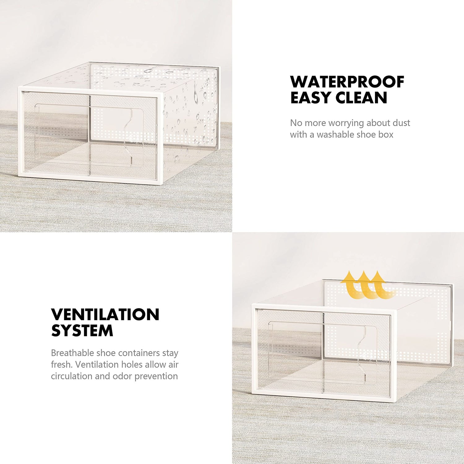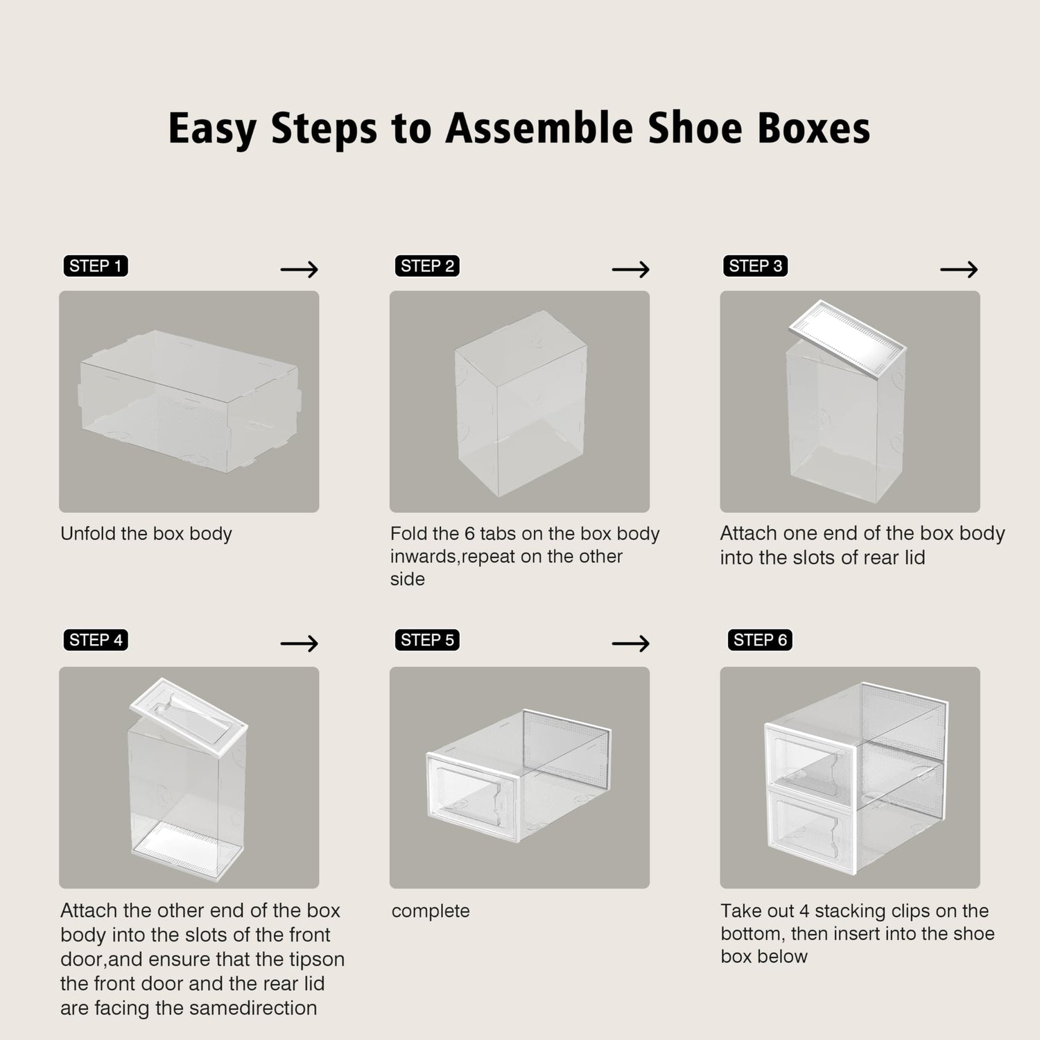 - What You Get: Pack of 12 shoe organizer with clear front door, great substitute for shoe rack, entryway, under bed storage, stackable and foldable design, ventilation holes, easy-to-follow instruction, neatly organize your shoes.