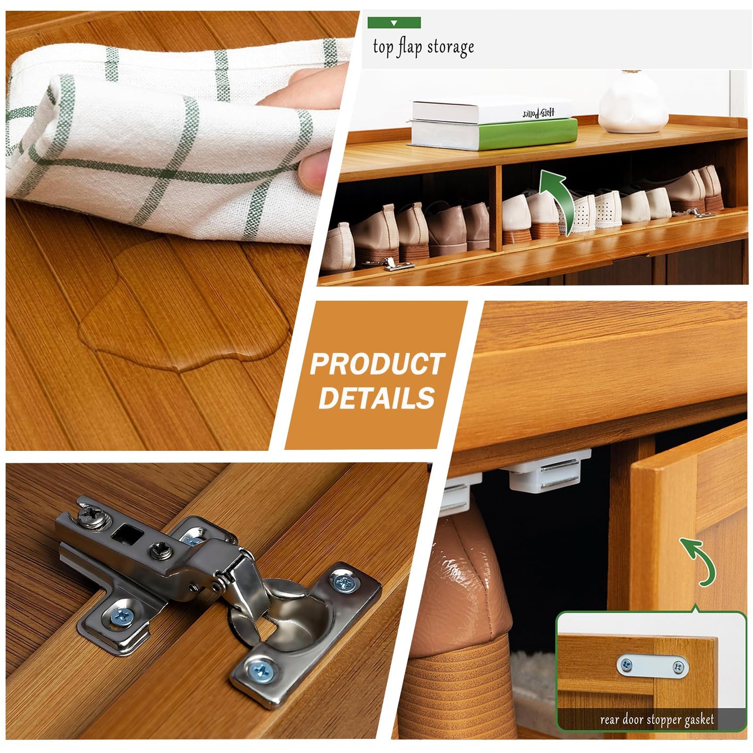 - ★【Elegant design of bamboo】 The combination of MDF wood panel and bamboo makes the shoes storage cabinet more elegant and practical. The hidden shoe cabinet can cleverly use the narrow space in the foyer and corners, and say goodbye to clutter and disorganization. Decorate your home space with furniture of natural attributes to make your home more comfortable.