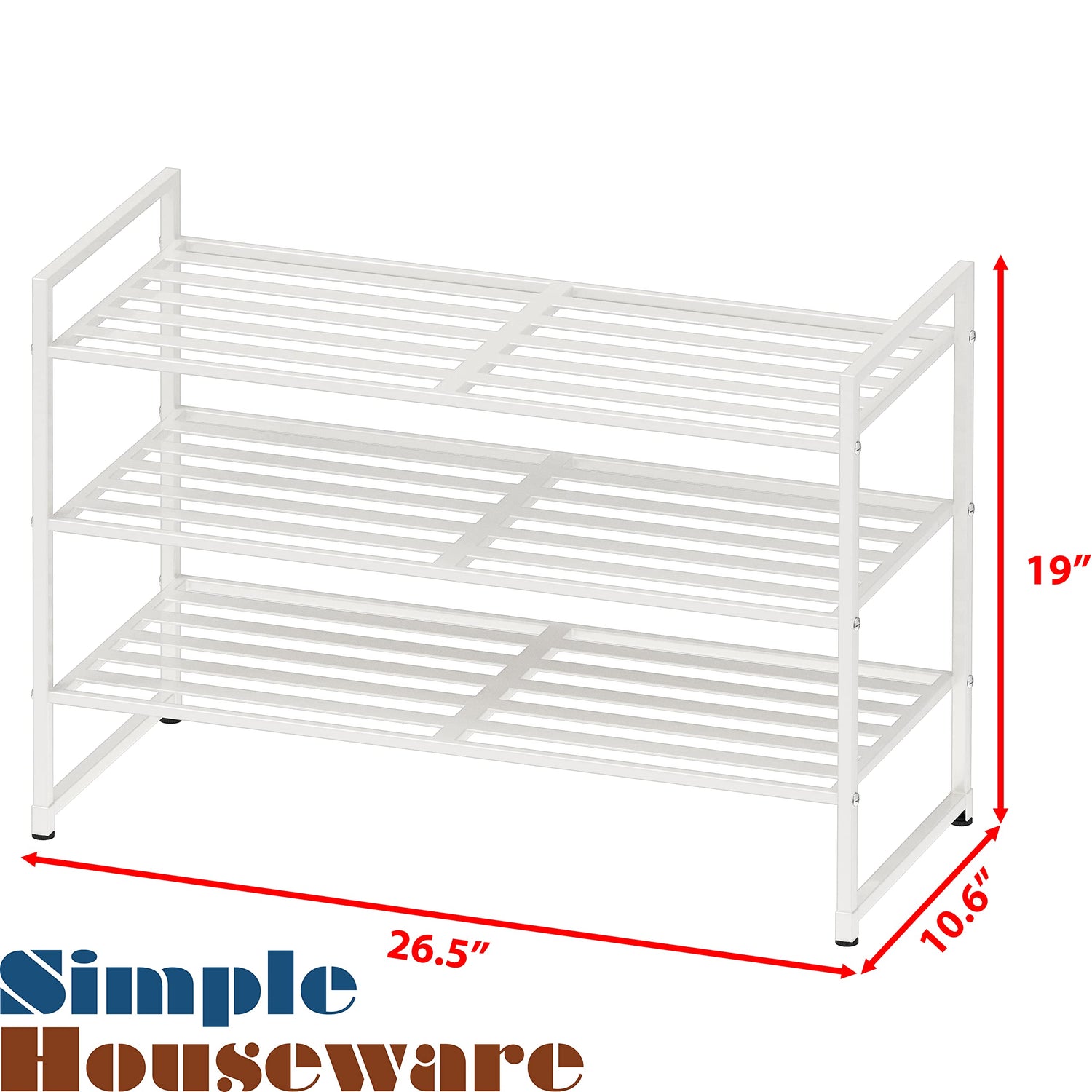 Simple Houseware 3-Tier Stackable Metal Panel Shoes Rack, White