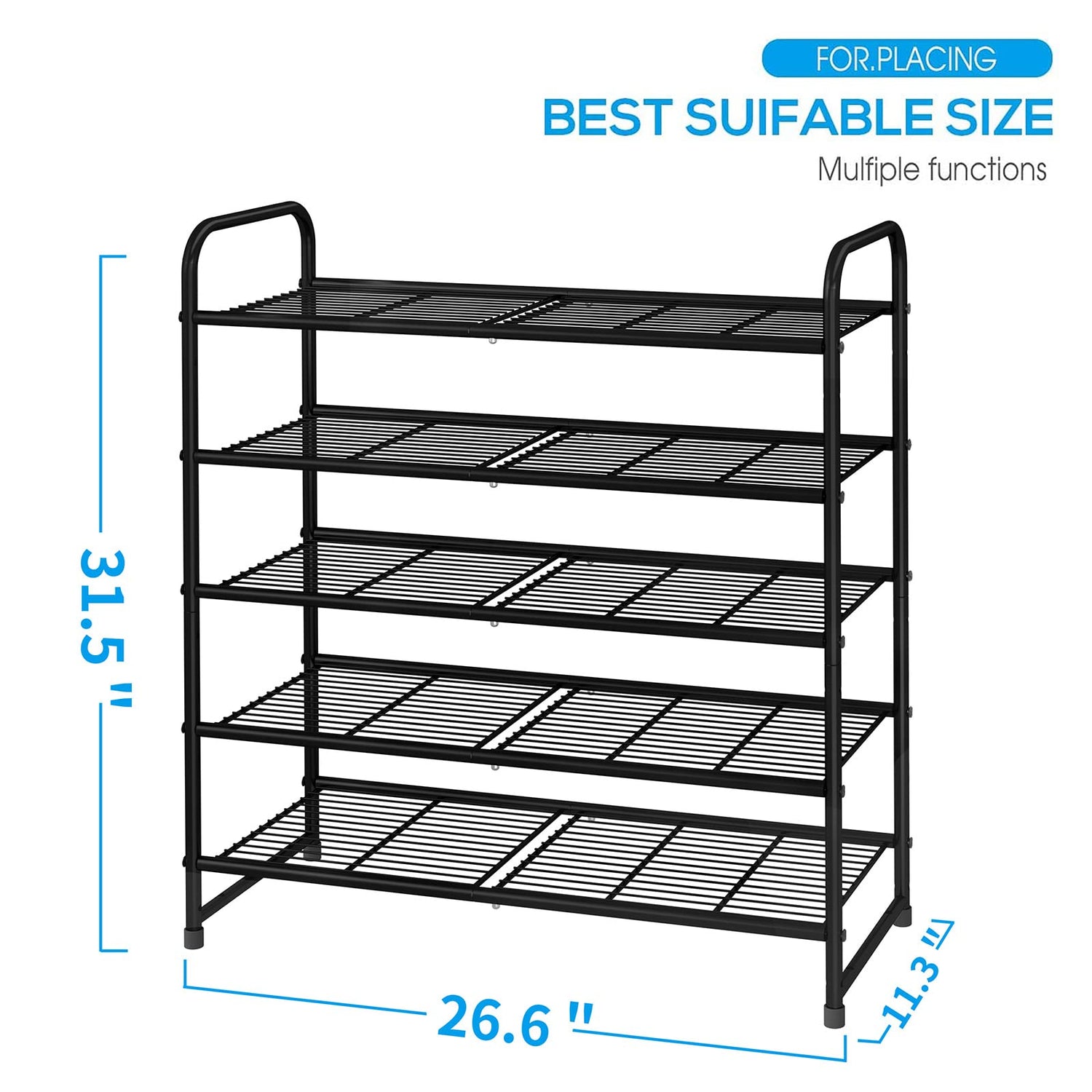 - 5-TIER SHOE RACK:This shelves fit boots, high heels or slippers and hold 15-18 pairs of shoes