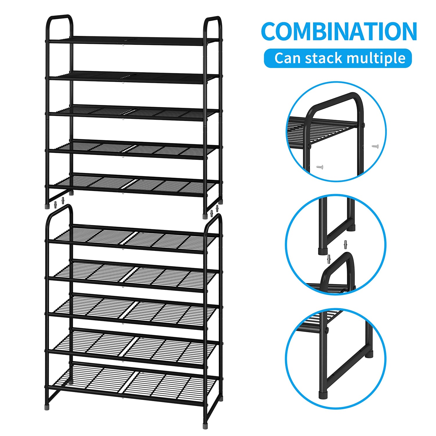 - STACKABLE AND EXPANDABLE FOR DIY:2 sets and more can be stacked vertically to get a complete 10-tier shoe rack or bridged horizontally to expand the unit