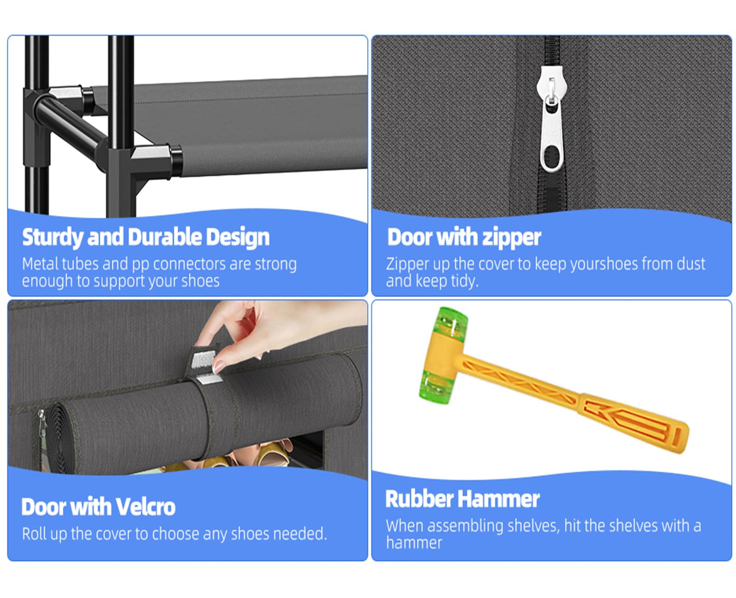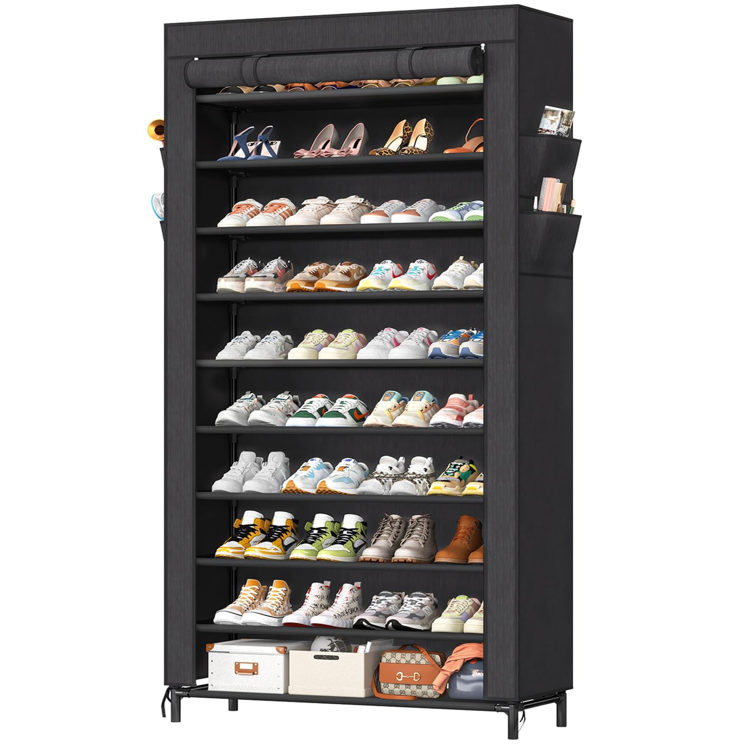 - Quality Dust Cover: Equipped with a quality dust cover, zipper it up to prevent shoes and other items from getting dusty. Equipped with 4 side pockets to add more storage space for you. The dust cover fabric is high quality, waterproof and removable, providing you with more choices