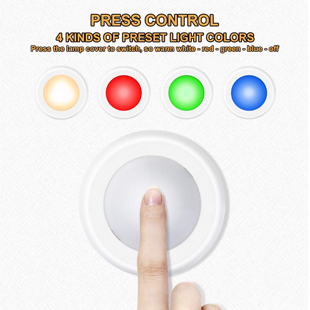 Details: SIXDEFLY Wireless Color Changing LED Puck Light 12 Pack With 4 Remotes, especially as LED night light great for dark areas, such as closet, under cabinet, hallway and etc.
