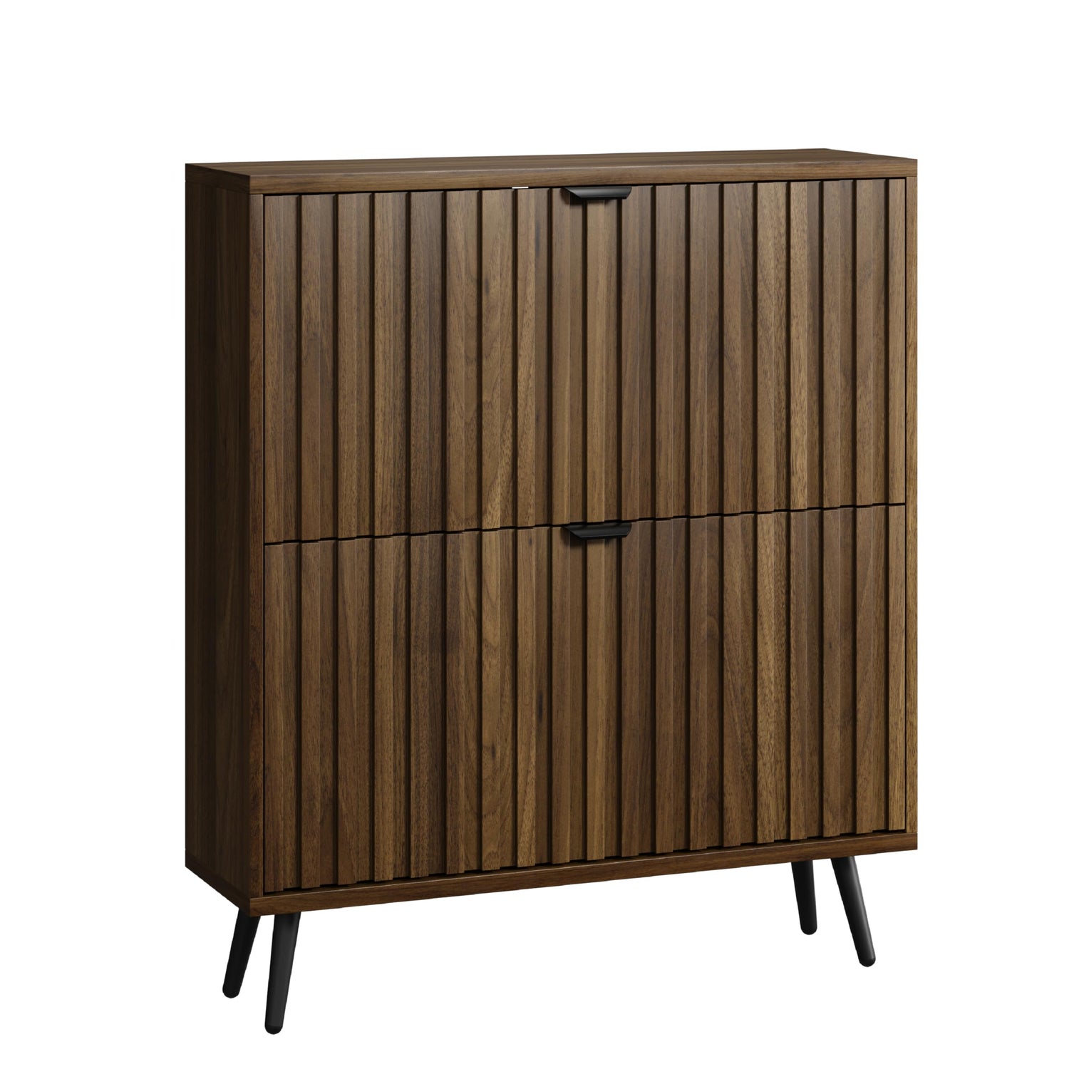 - 【Unique Design】This shoe cabinet features fluted design elements and a special production process that gives the doors with fluted elements an overall seamless look. The combination of walnut color and matte metal makes a perfect blend of mid-century and modern. It can be applied to any style.