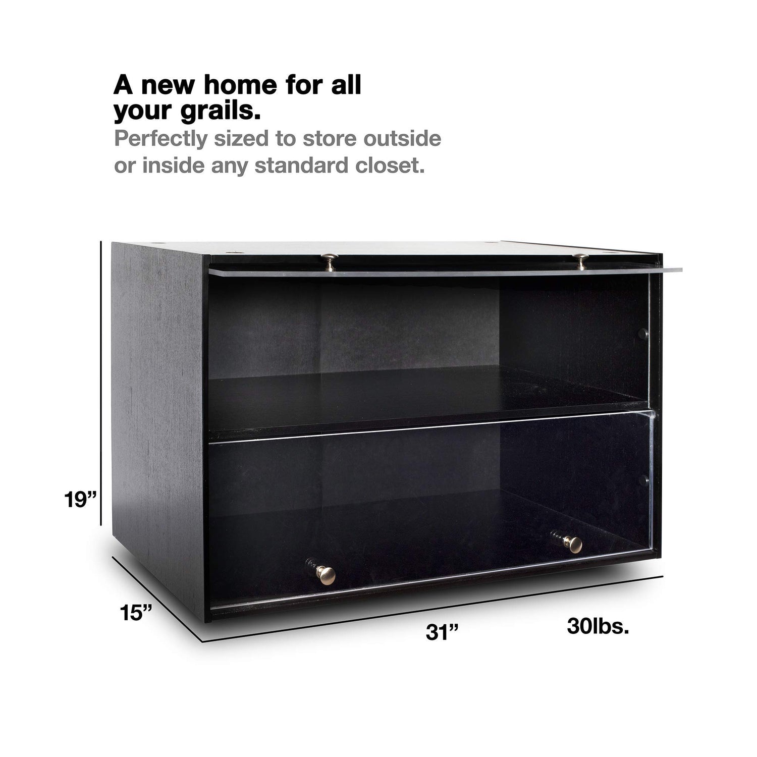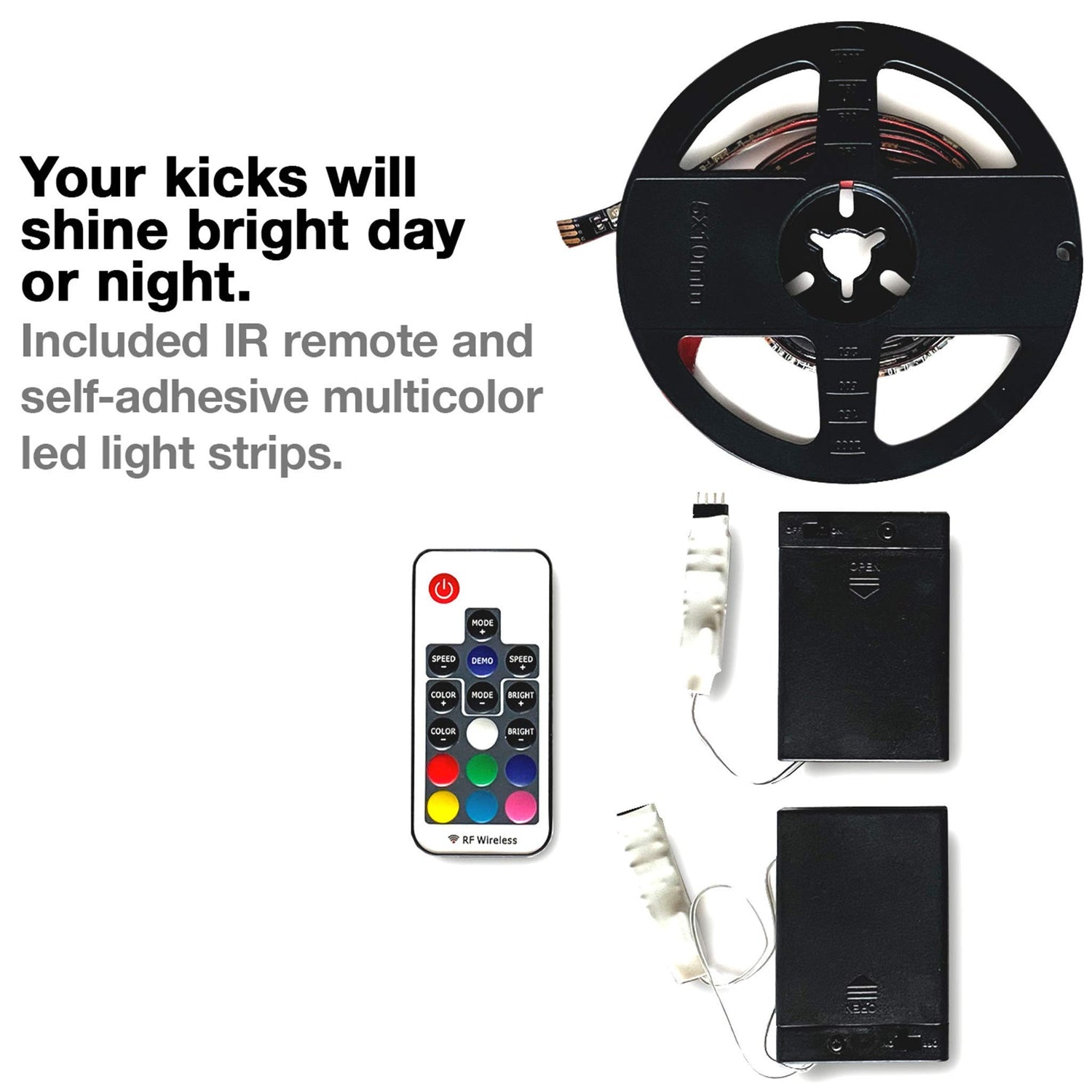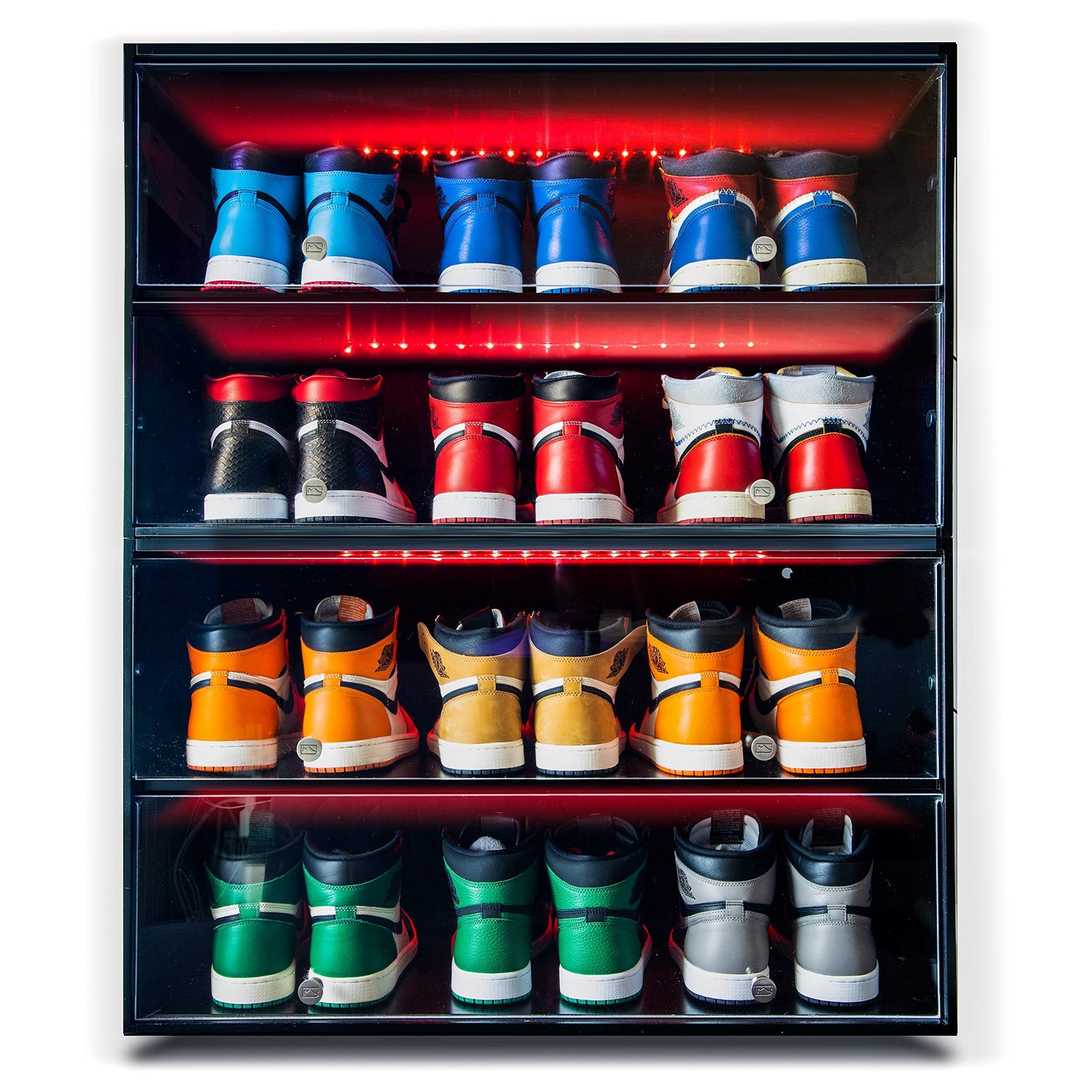 Sneaker Throne Shoe Rack with Lights for Up To 6 Pairs - Black Wooden Shoe Shelf with Sliding Doors for Bedrooms, Outdoors, Garages