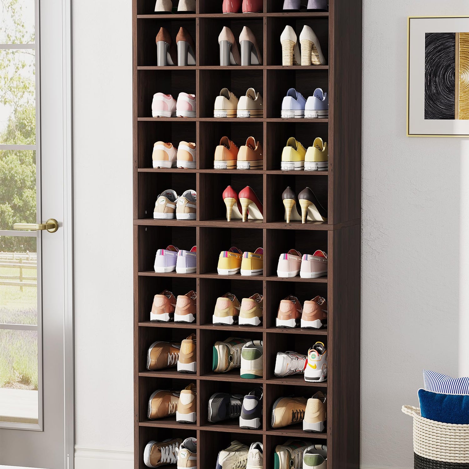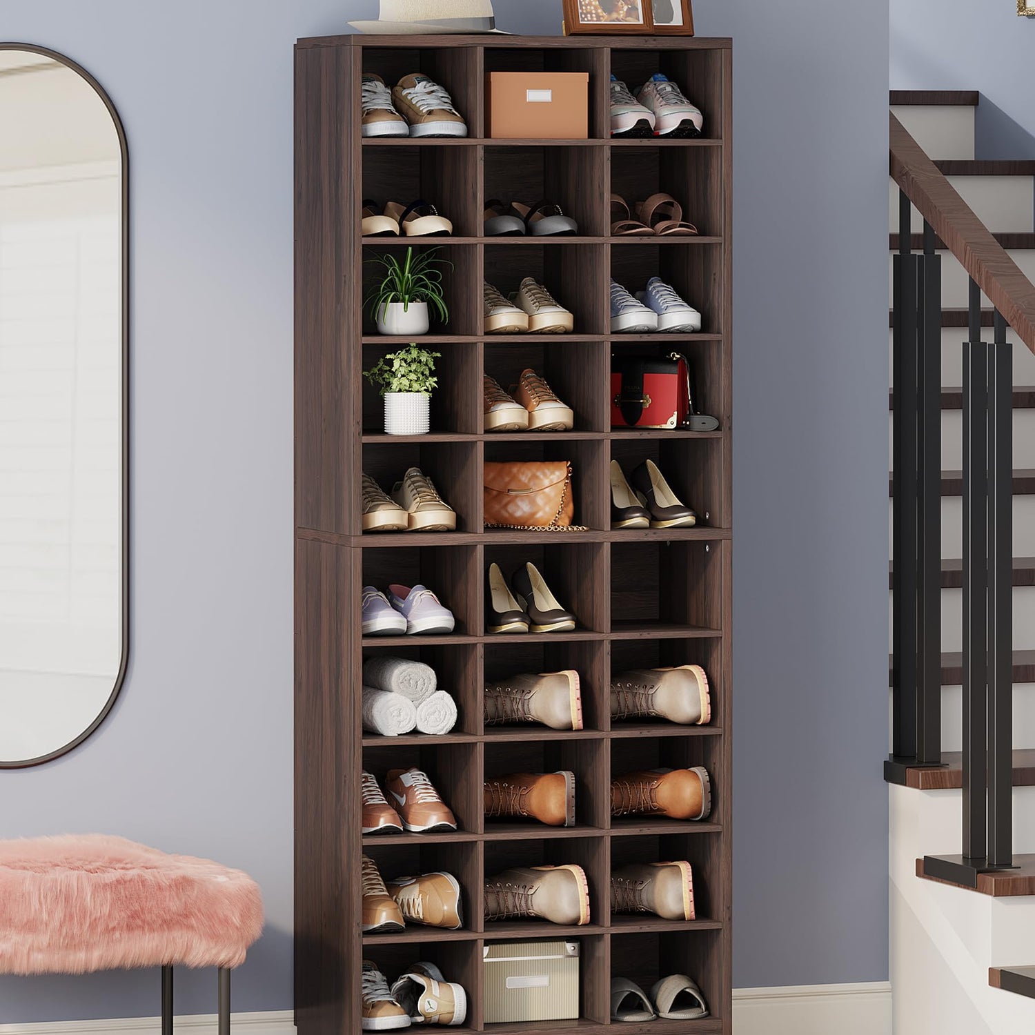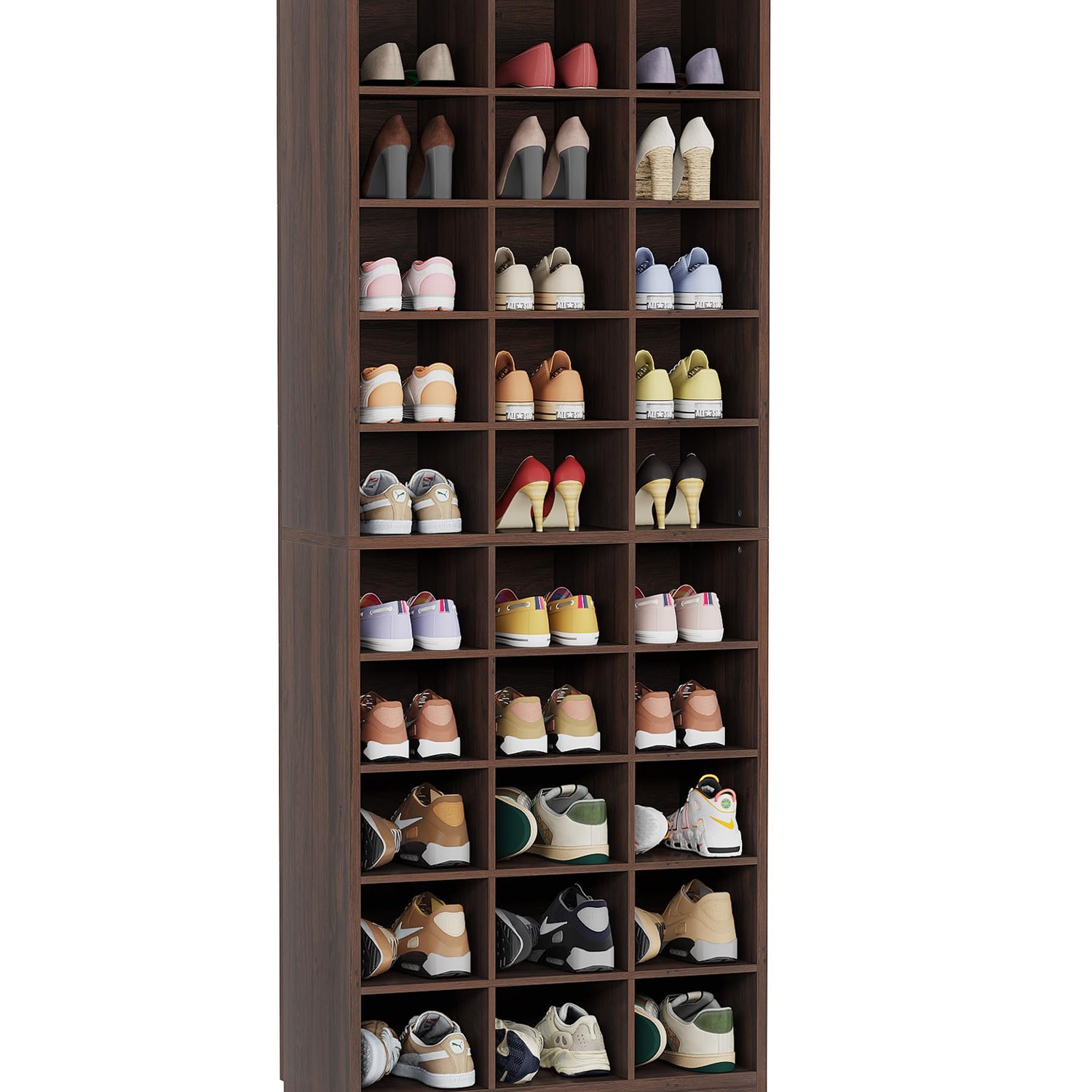 Tribesigns 10-Tier Shoe Storage Cabinet, Espresso Wooden Shoe Rack with 30 Cubbies, Freestanding Tall Entryway Shoe Organizer for Closet, Entryway, Living Room