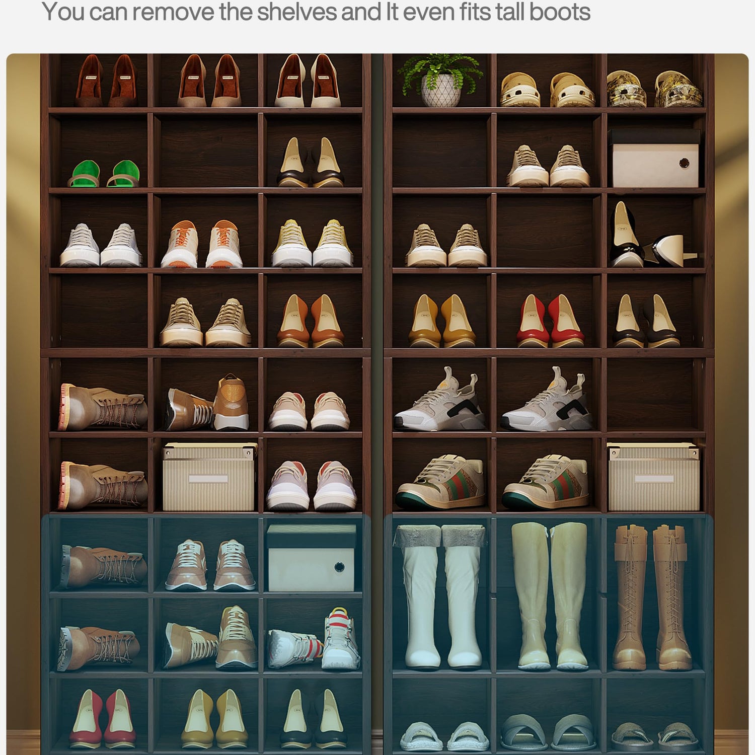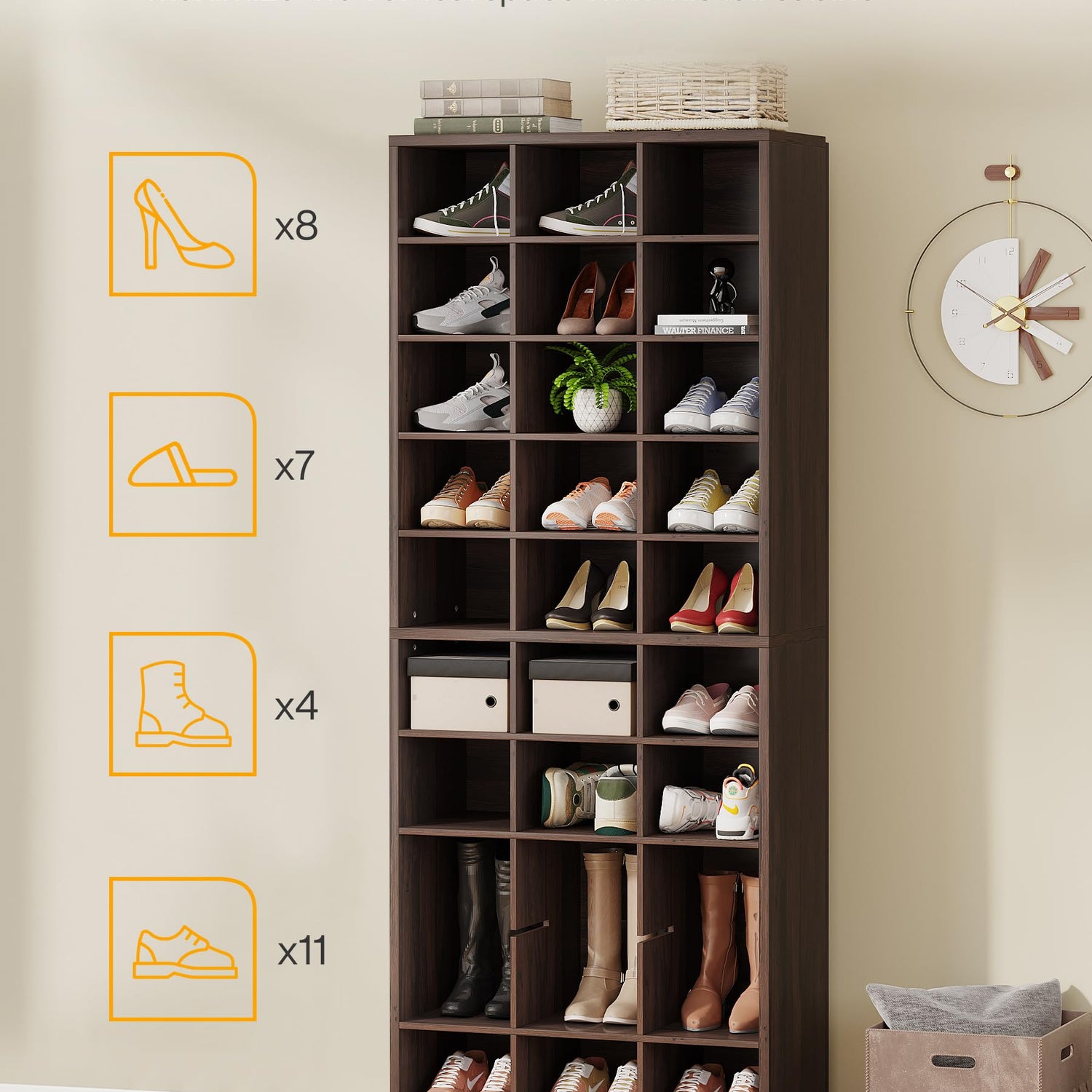 - 【Flexible Structure to Fit Shoes】This tall shoe cabinet with 30 cubbies is sufficient to store flats, sneakers, and high heels, you can also remove some shelves to store tall boots. Suitable for men's and women's sizes! (Please note that if your shoes are bigger, we recommend one cubby to place one shoe that will be better.)