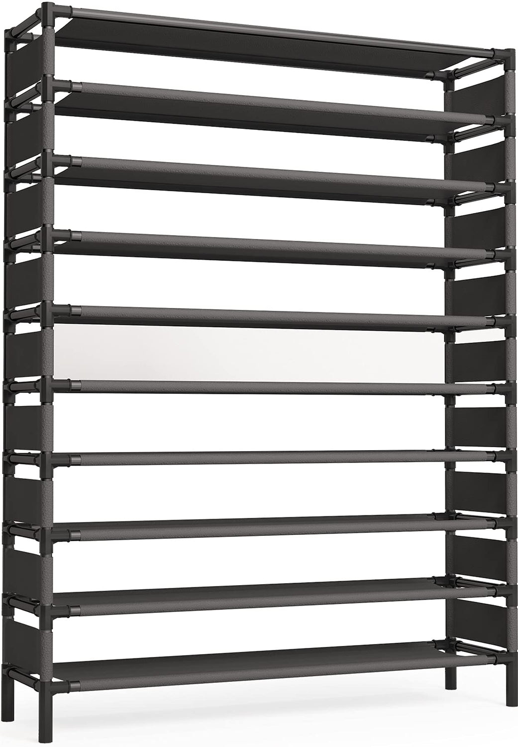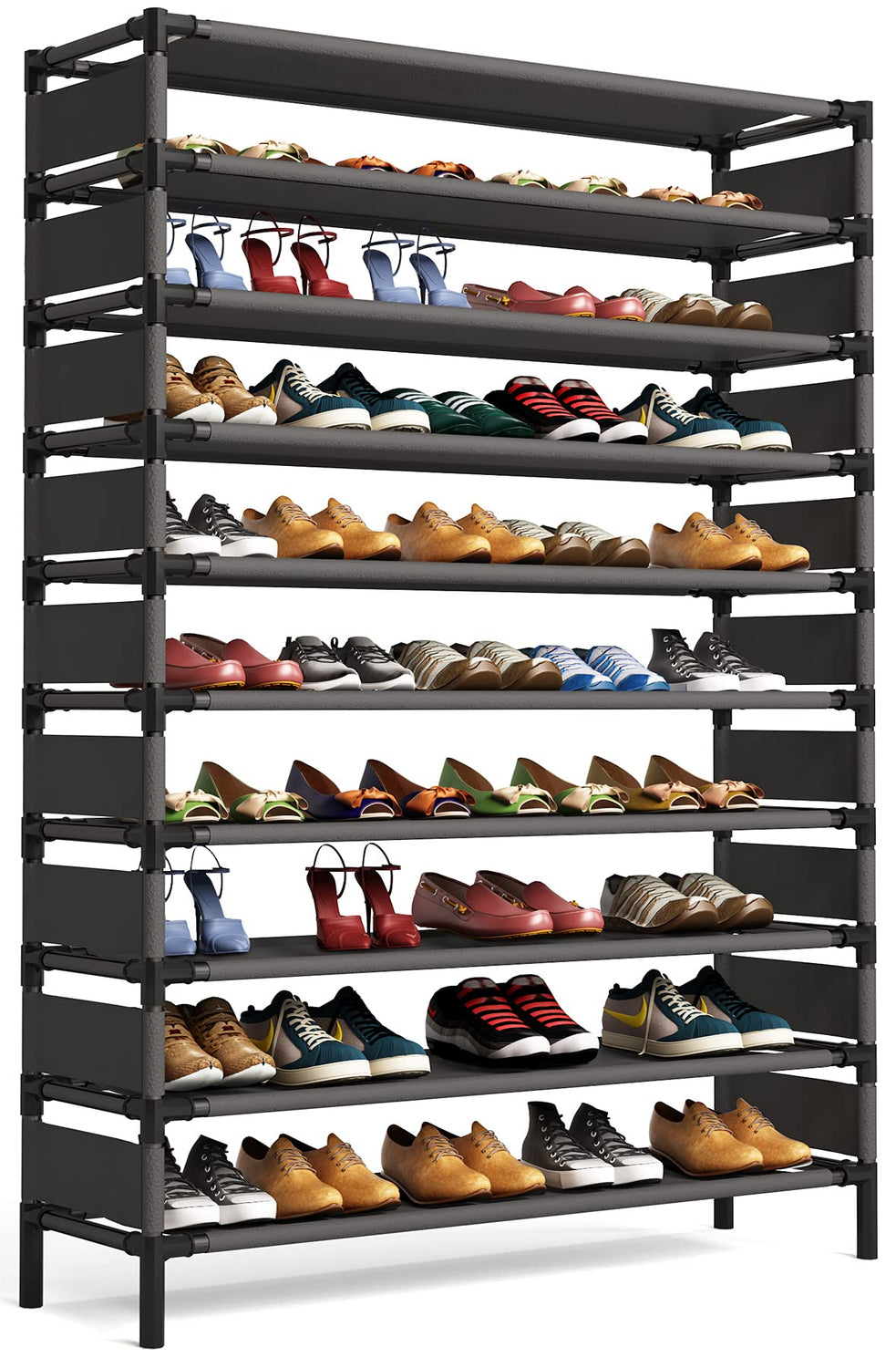 - 【Holds Up TO 50 Pairs Shoes】With 10 ties of shelving that can conveniently hold all your family’s shoes, sneakers, boots, high heels or flats,it can hold up to 50 pairs of shoes. Say goodbye to the mess and keep your room well organized from now on.