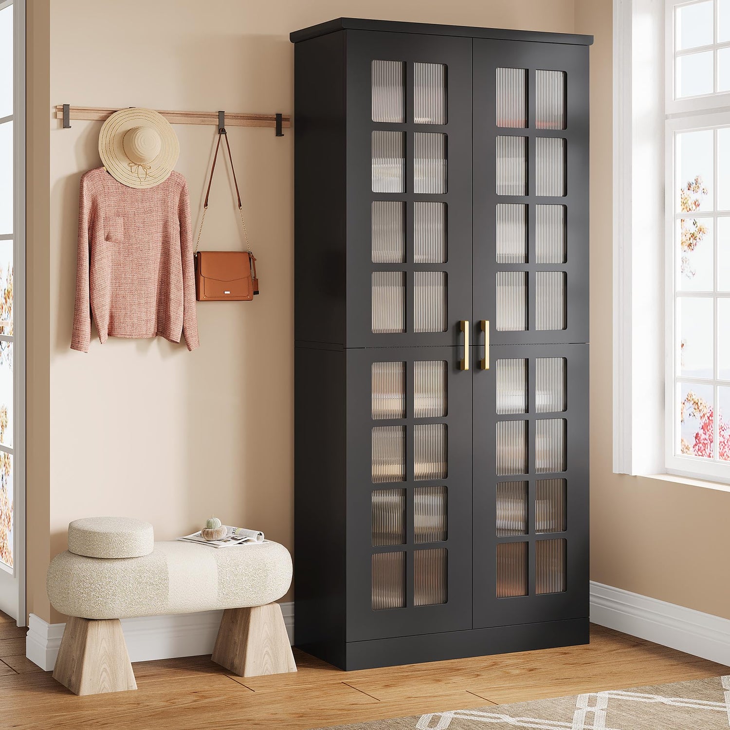 • Flexible and Large Capacity: This 8-tier black shoe cabinet, with its adjustable panels and dimensions of 31.5" W x 13.8" D x 70.9" H, simplifies shoe organization and can accommodate up to 32 pairs, ranging from slippers to boots