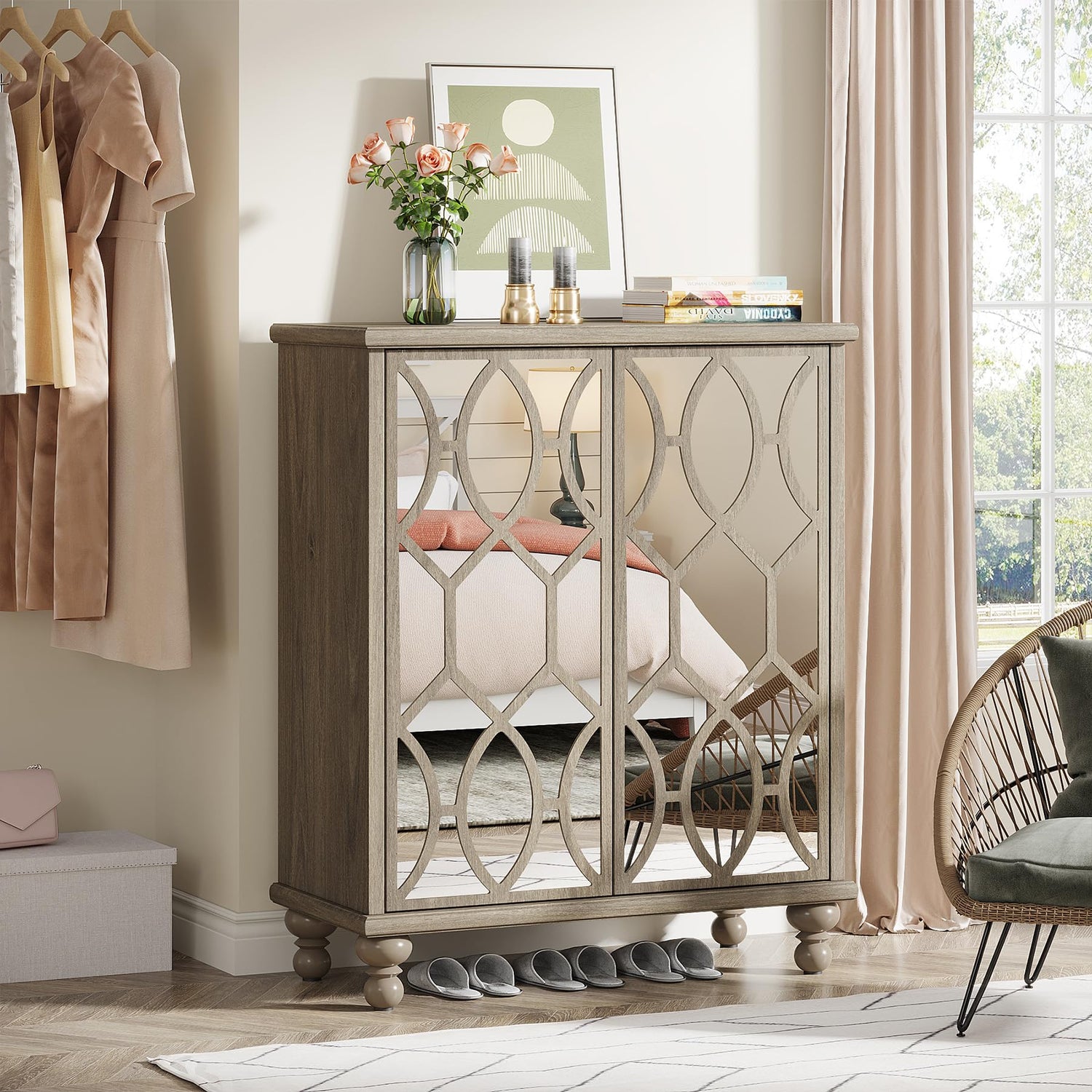 - 【Shoe Cabinet with Mirror】: Epitomize elegance with this tall shoe cabinet, characterized by a chic mirror on the front and adorned with a geometric pattern. This cabinet offers more than functionality – it's an embellishment that enhances your home decor.