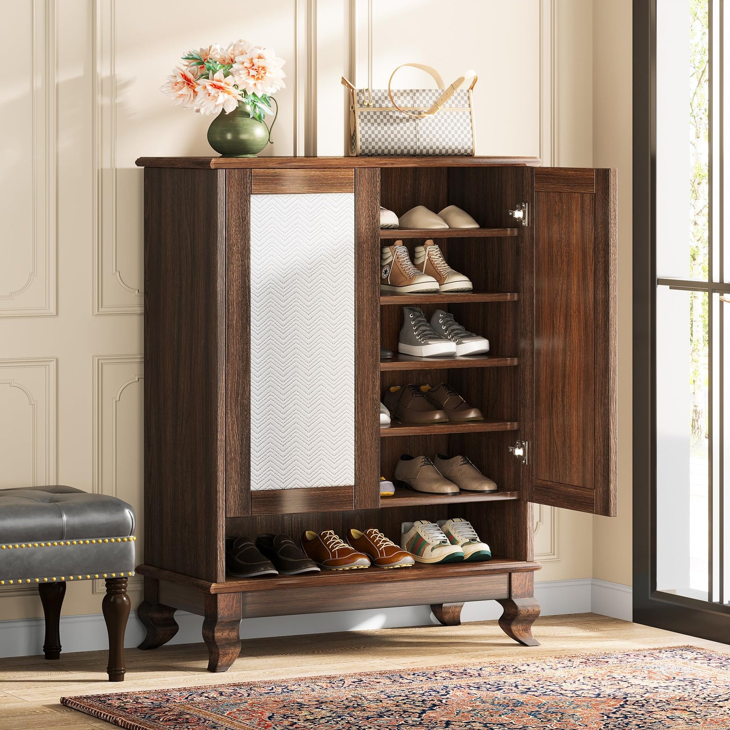 Tribesigns Shoe Cabinet for Entryway, 6-Tier Large Shoe Storage Cabinet with Doors and Adjustable Shelves, Wooden 24-Pair Shoe Rack Organizer Cabinet, Dark Walnut