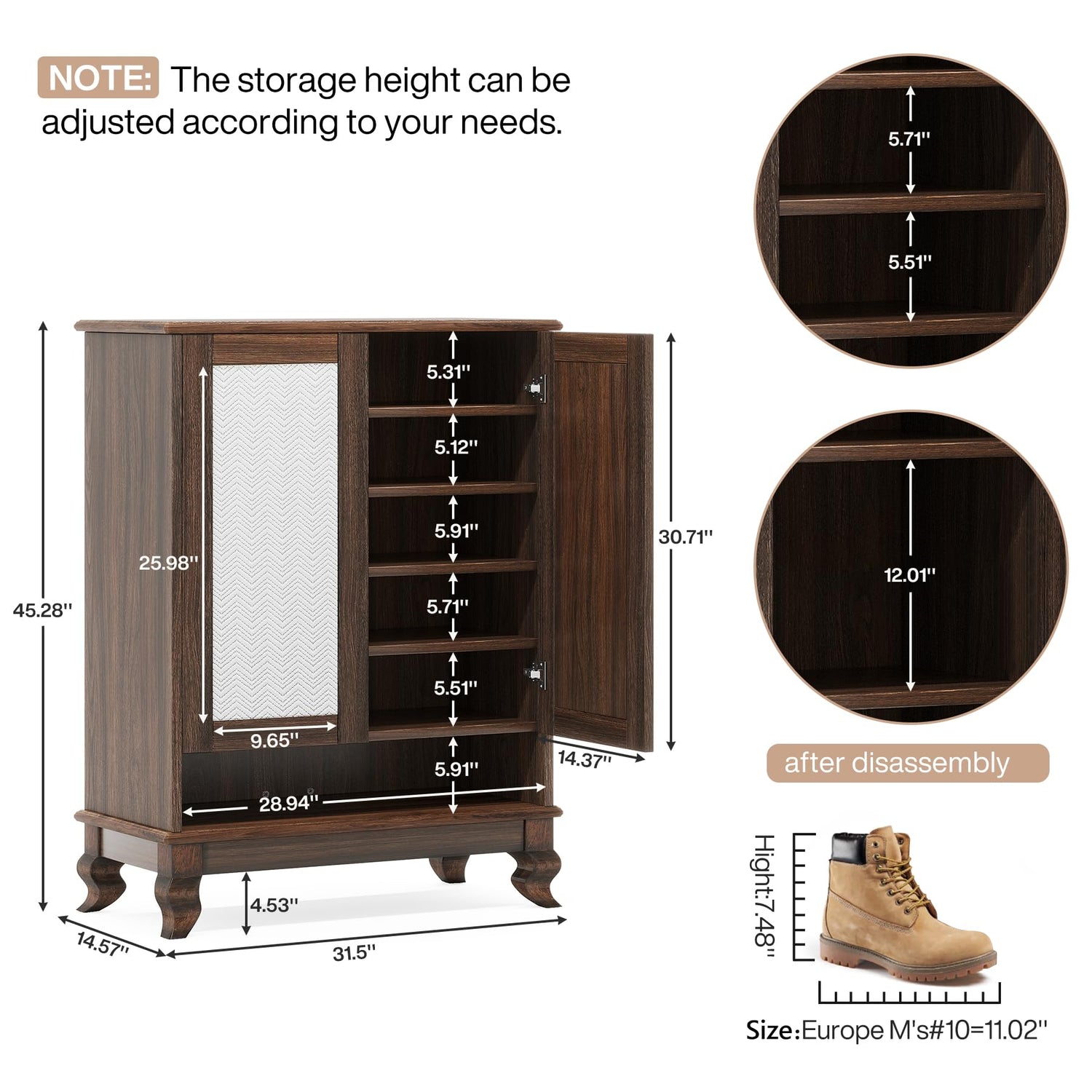 • 【Chic Vintage Shoe Cabinet】 Elevate your living space with our wooden shoe cabinet which showcases elegant herringbone embroidery patterns on its doors, bringing a chic touch of vintage sophistication to your home. With its classic design that beautifully marries old-world charm and contemporary style, it flawlessly fits into any decor aesthetic, be it in your entryway, hallway, foyer or living room.