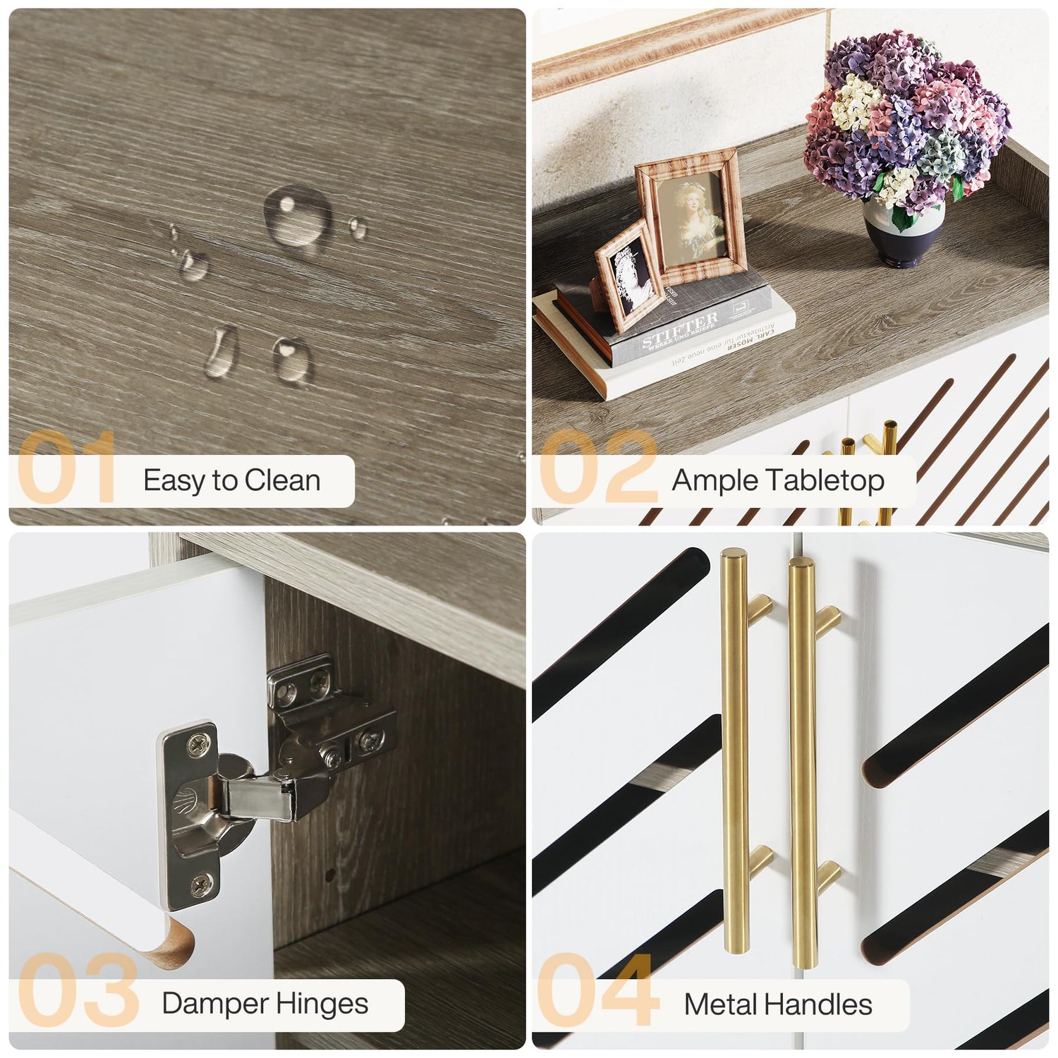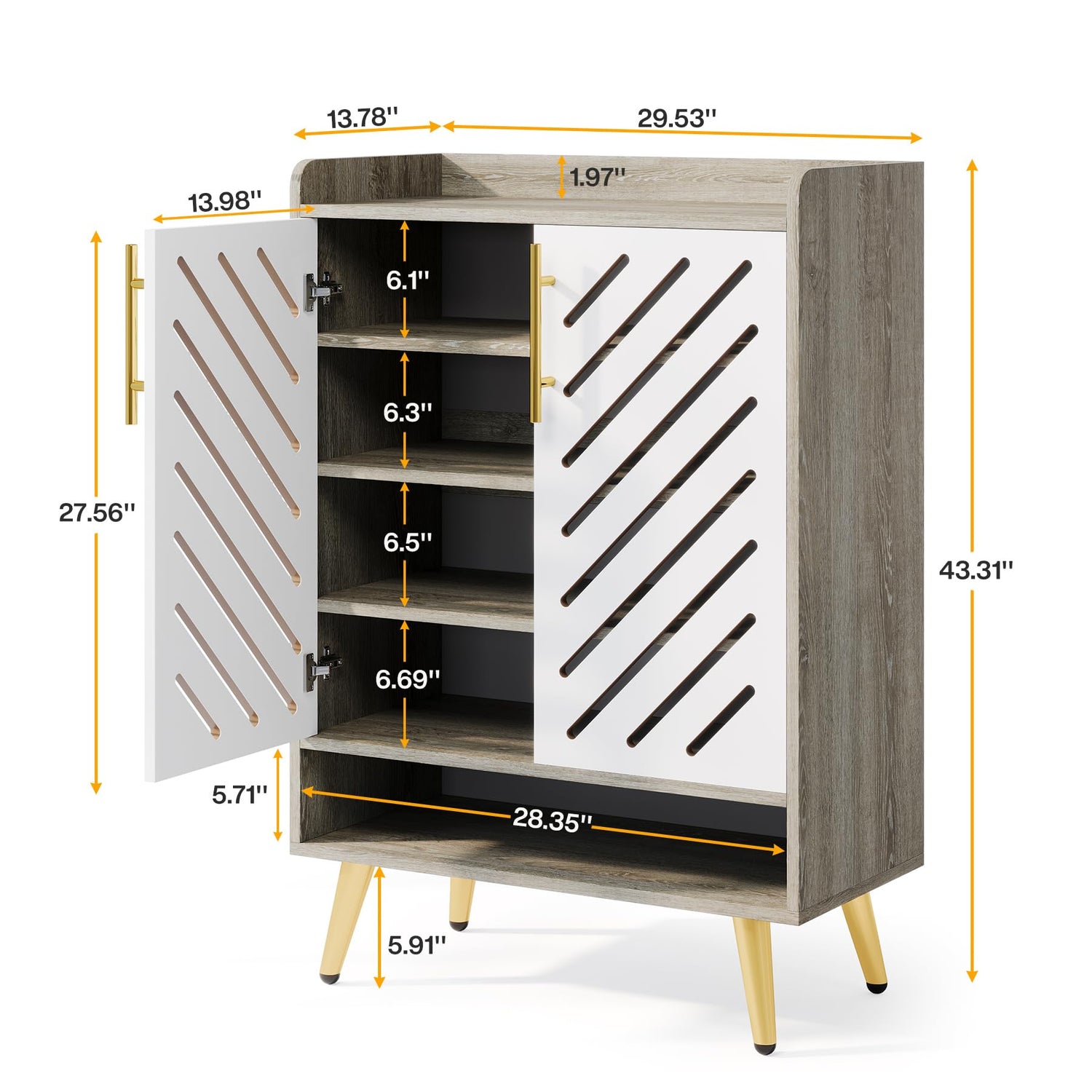 • Stylish Elegant Design: Our shoe cabinet for entryway features a minimalist aesthetic in classic white and gray colors, with unique hollow design on the doors. The subtle luxury gold handles and cylindrical metal legs adds a distinctive touch, making it an eye-catching and standout piece of furniture. It can not only enhance the visual appeal of your space but also provide practical storage
