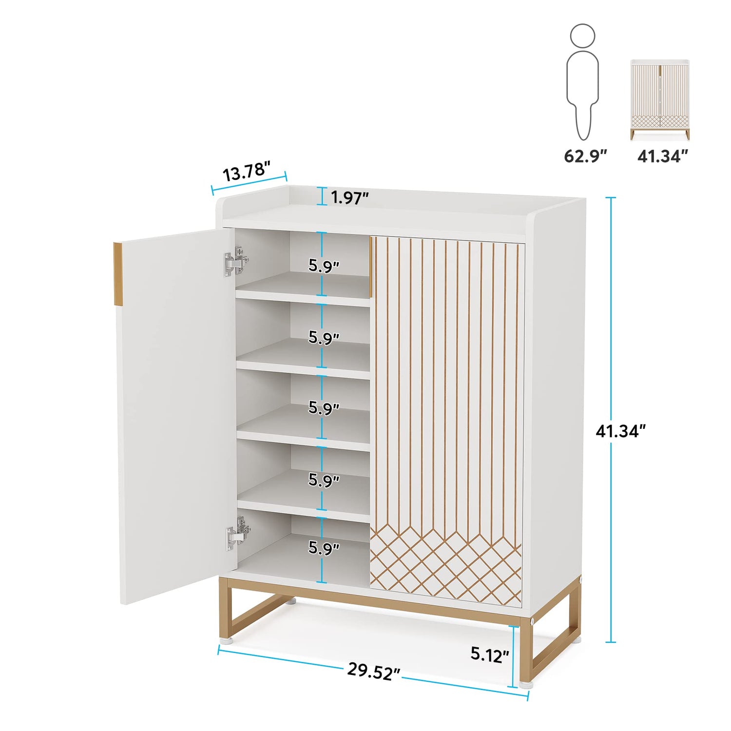 Tribesigns White, 25 Pair Shoe Cabinets with Doors, 5-Tier Modern Shoe Rack Organizer Cabinet, Freestanding Wood Storage Cabinet with Gold Metal Frame for Bedroom Hallway Living Room