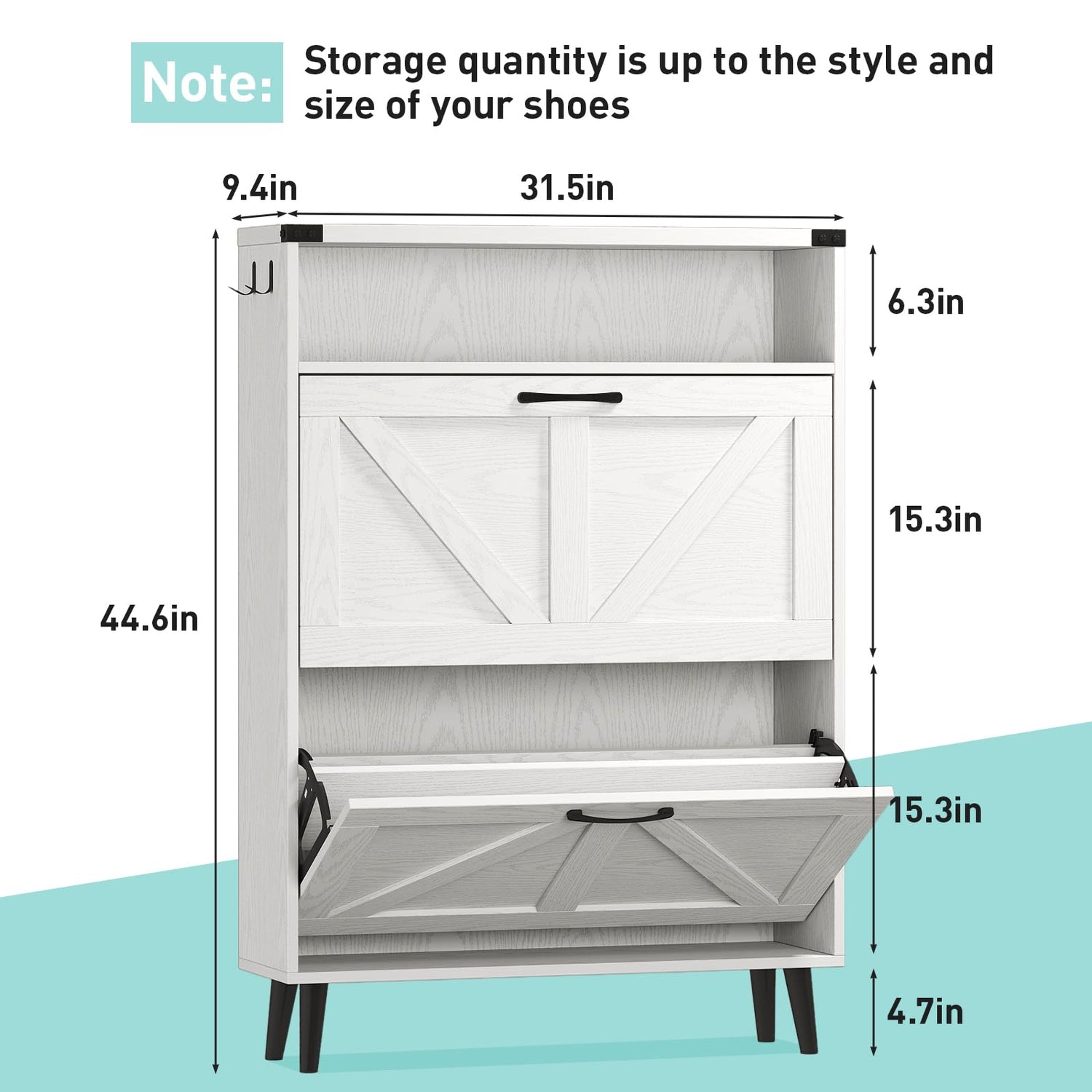 - Shoe Storage Cabinet With 2 Flip Drawers:shoe cabinet for entryway with open storage,You can put a lot of small things like keys, wallets and other items.The bottom space can store slippers.No more worrying about not having enough room for your shoes.
