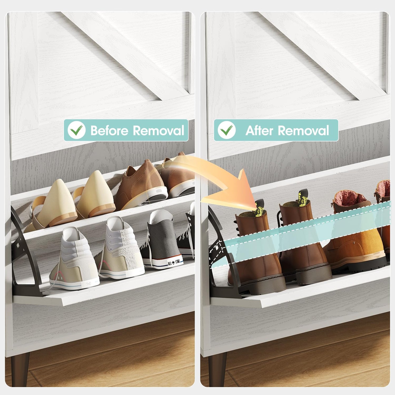 - Easy to Assemble, Clear Instruction: The hidden shoe storage cabinet includes all parts,hardware,and clear installation instructions in 1 box. Every part has corresponding labels.