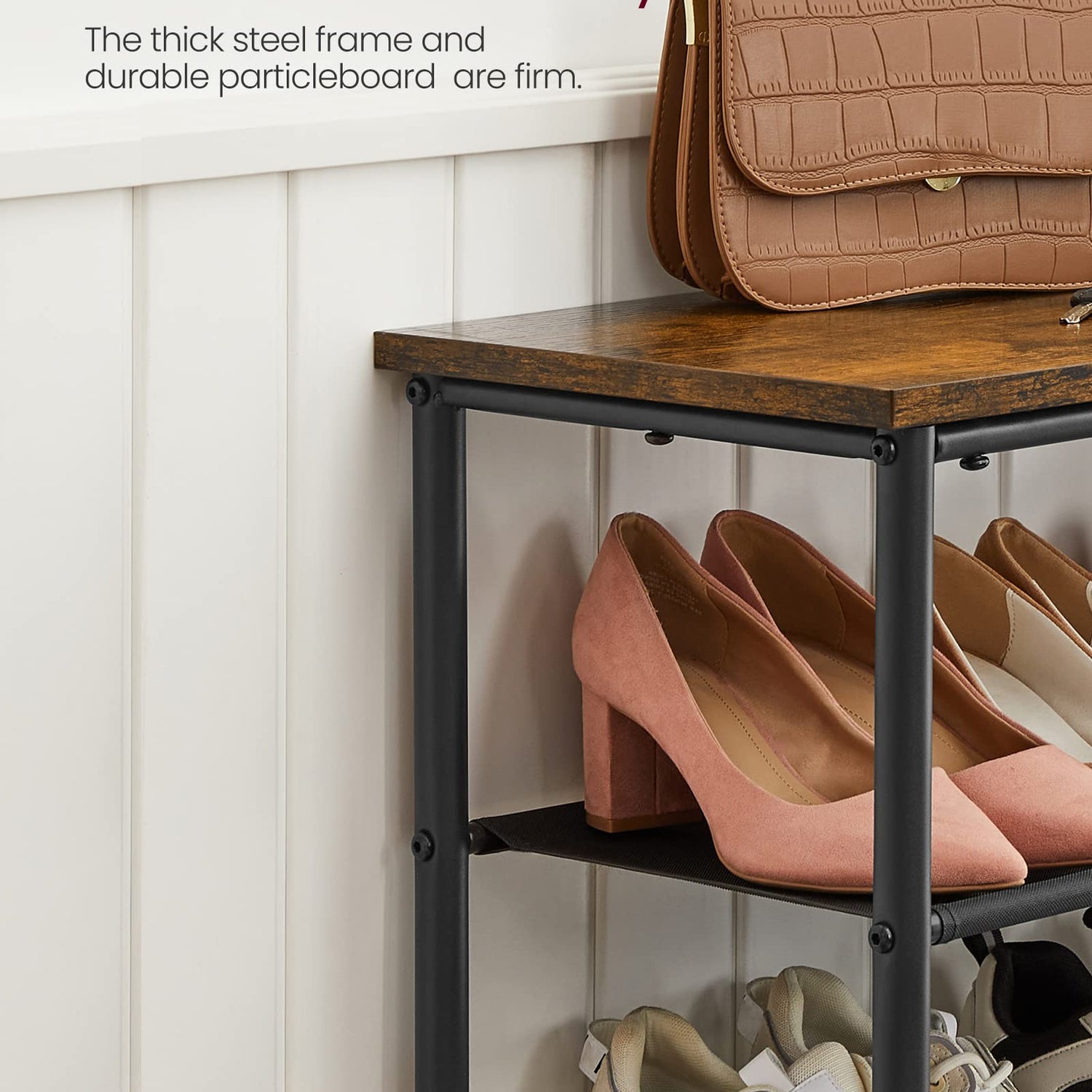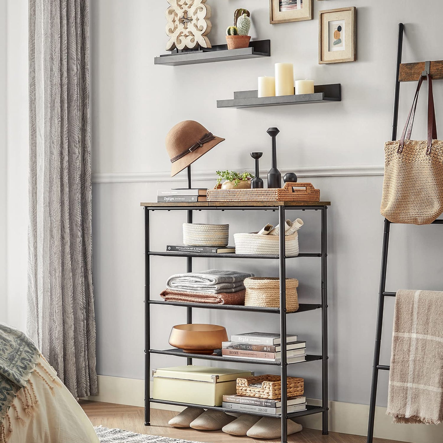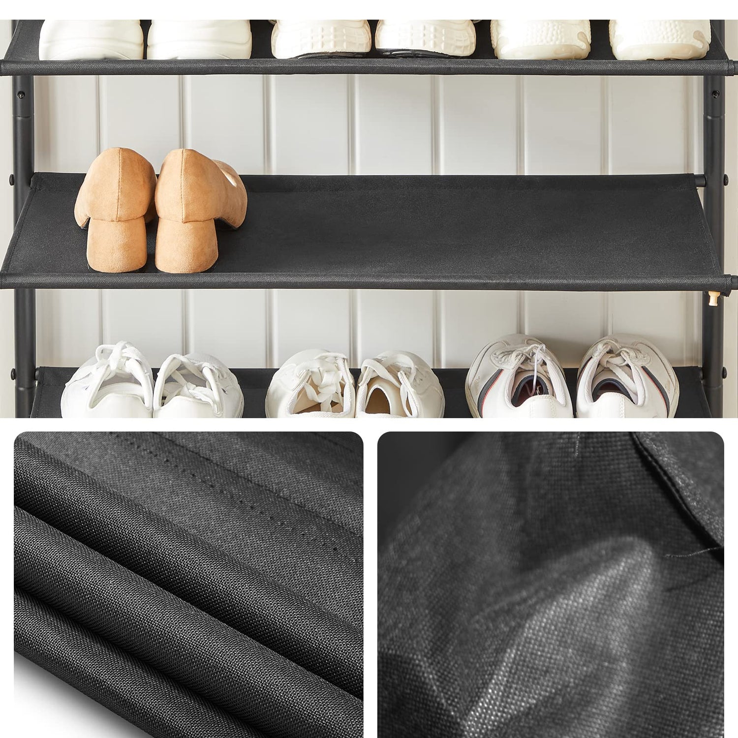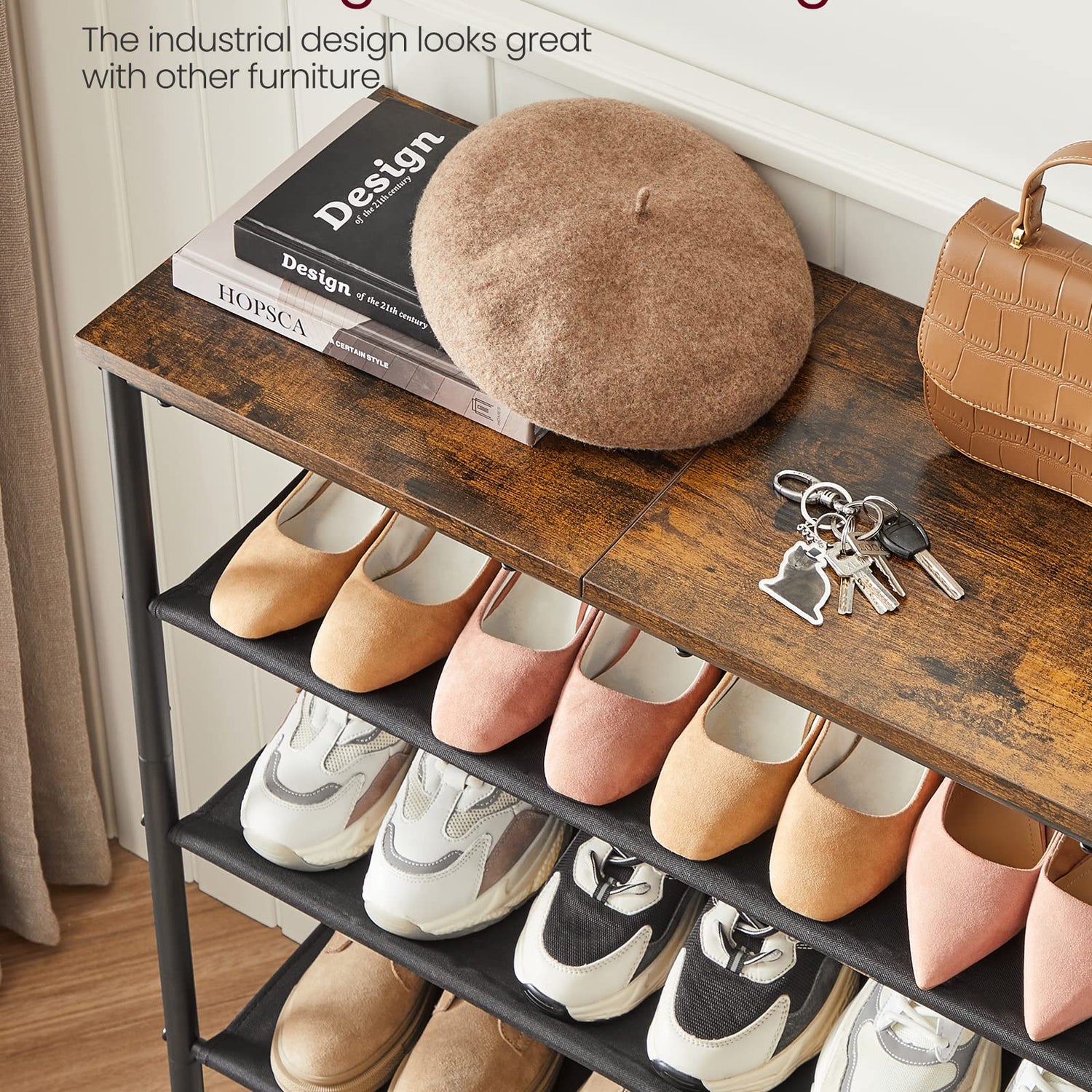 VASAGLE Shoe Rack, 5-Tier Shoe Storage Organizer for Entryway and Closet, Holds 12-16 Pairs of Shoes, 4 Fabric Shelves, Steel Frame, Industrial, Rustic Brown and Black ULBS036B01