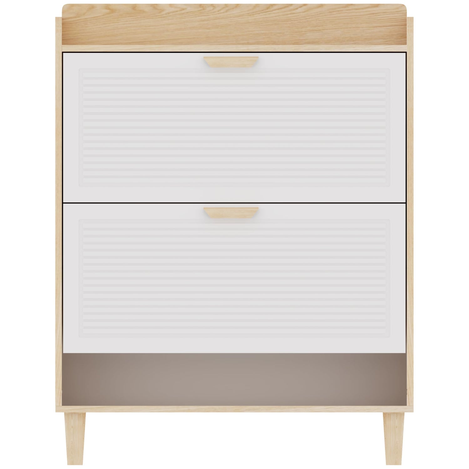 Vibe & Dine Shoe Storage Cabinet with 2 Flip Drawers, Freestanding Shoe Organizer with Solid Wood Legs for Entryway, Narrow Shoe Rack Cabinet for Bedroom, White