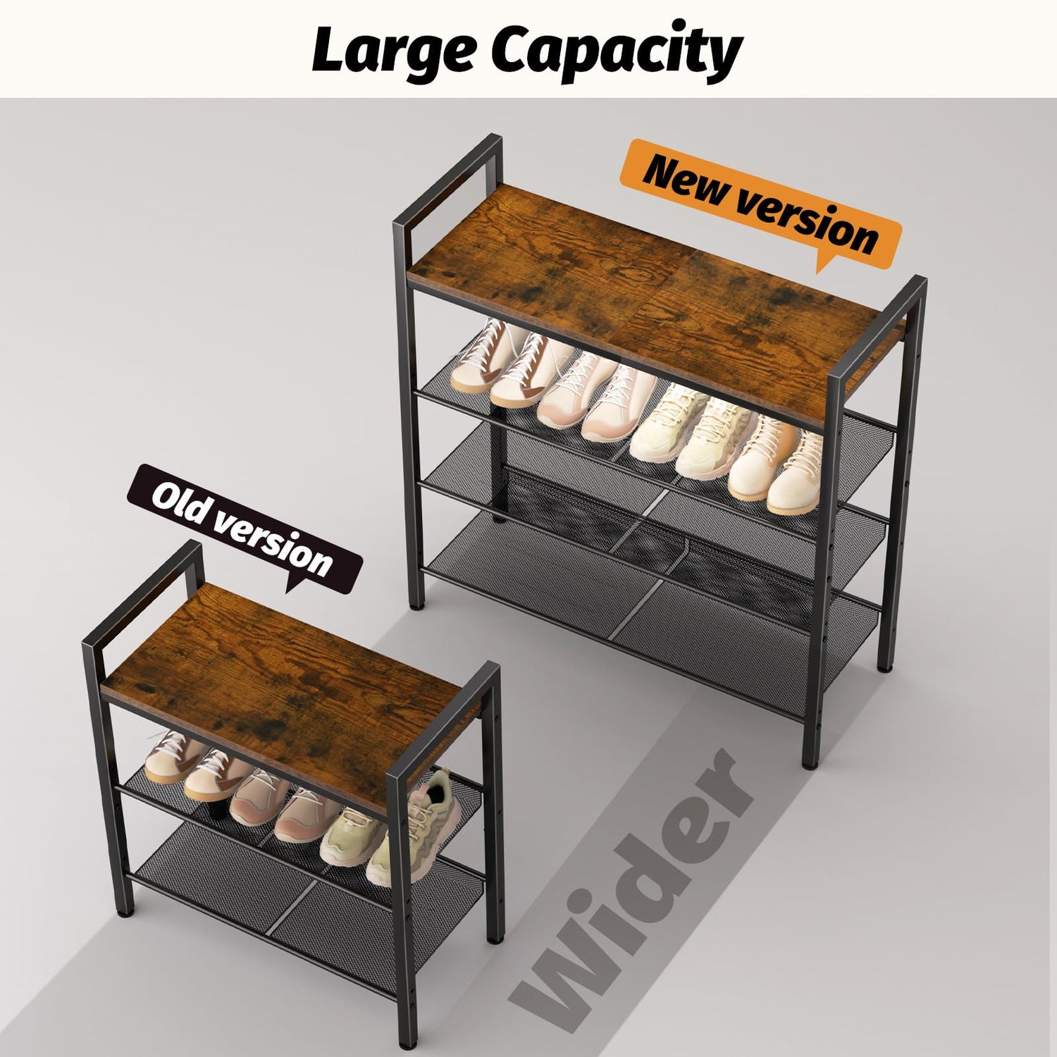 WIN4ALL Shoe Rack for Front Door Entrance, 4 Tier Shoe Rack for Entryway, 12-16 Pairs of Shoes, Metal Shoe Rack Organizer, Free Standing Shoe Rack for Closet (Black+Rustic Brown)