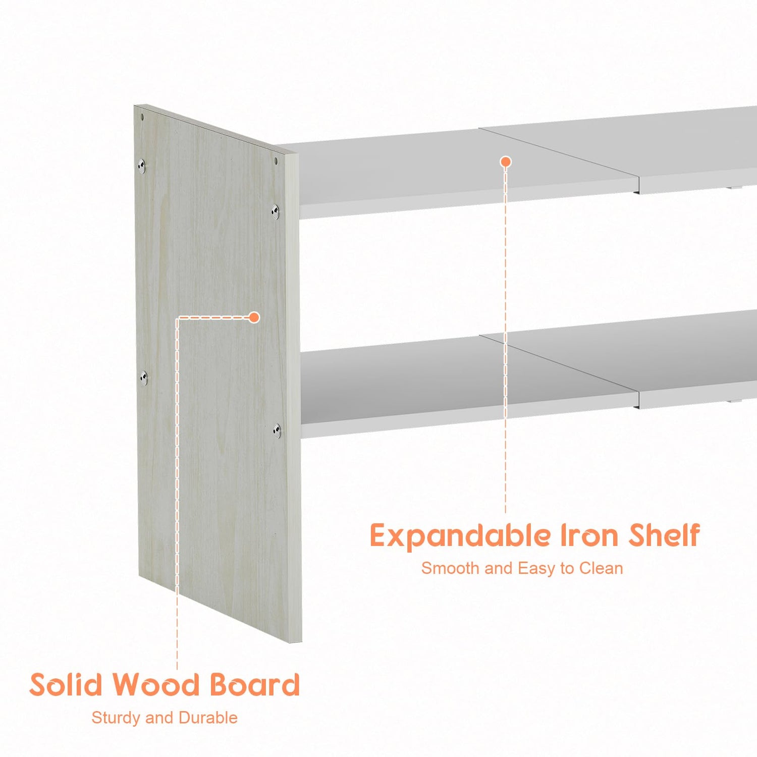 X-cosrack 2-Tier Shoe Rack Organizer for Closet, Expandable and Adjustable White Shoe Rack, Stackable Iron Wood Combination Shoe Storage Shelves for Closets, Entryway, Small Space, Hallway, Garage