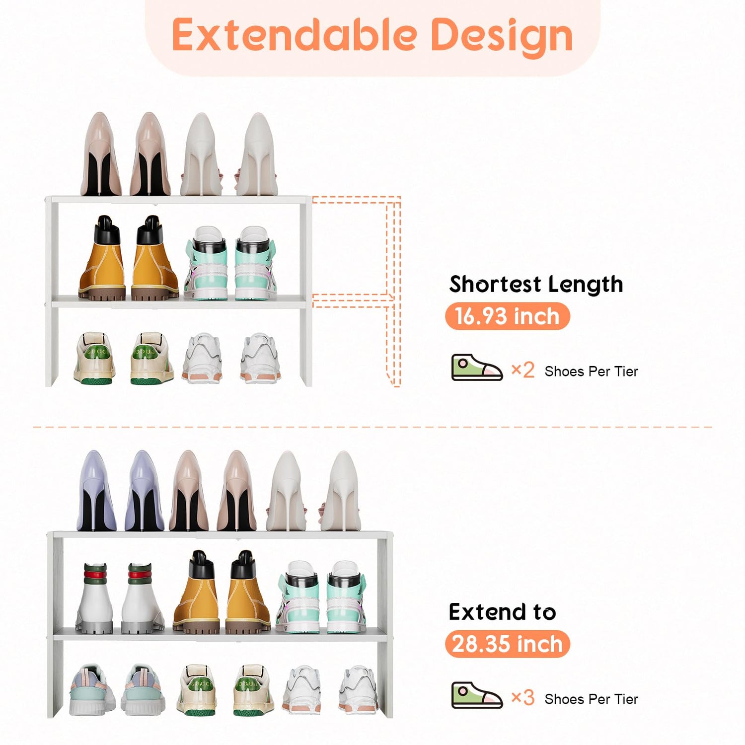 - 【Expandable Design】The length of the shoe rack organizer can be extended from 16.93 inches to 28.35 inches. Its easily adjustable length makes it easier for you to customize the right shoe rack to better fit your closet / space you want to keep it.