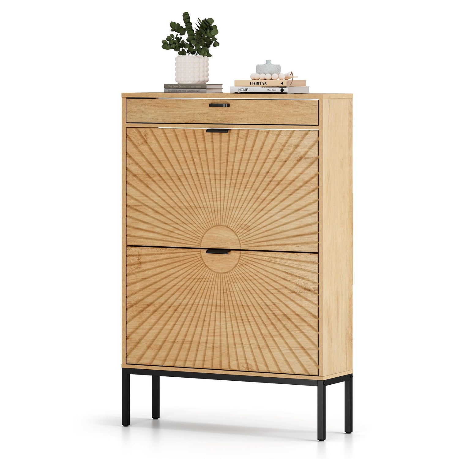- 【Humanized design】: Smooth handles are comfortable to the touch. Anti-tipping device ensures safety when using the freestanding shoe cabinet. The visually sensible flip drawer door design allows one to quickly find and take out shoes. Create freestanding shoe cabinets from the user's perspective.