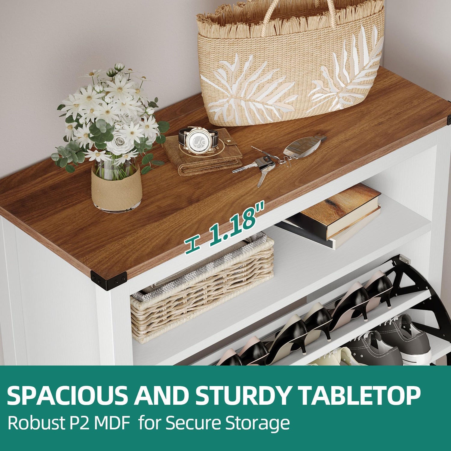 - Practical & solid: Our shoe storage cabinet with MDF panel features higher bending resistance. The wooden legs with foot pads protect the floor from scratches and ensure stability, capable of supporting heavy loads.
