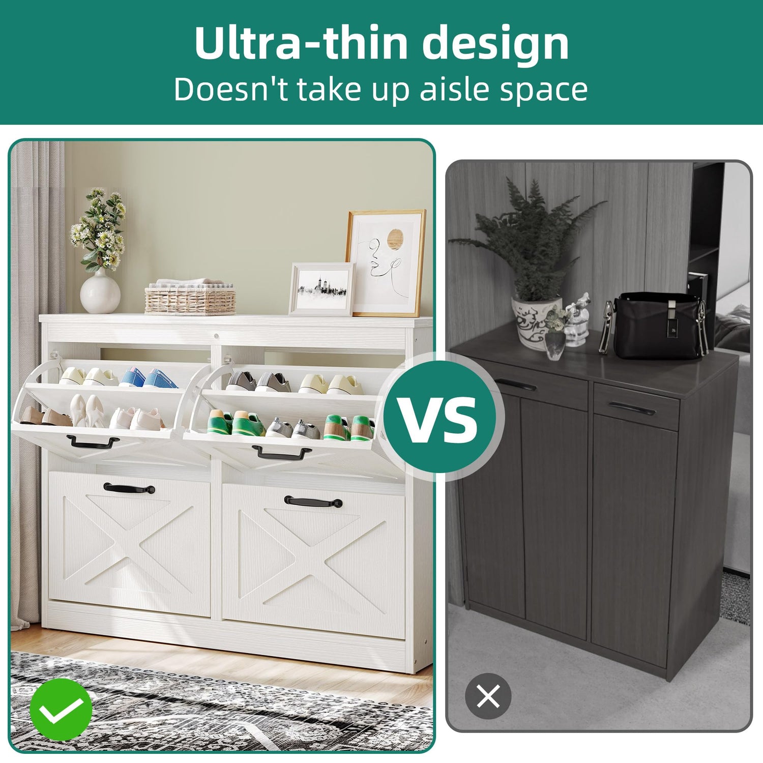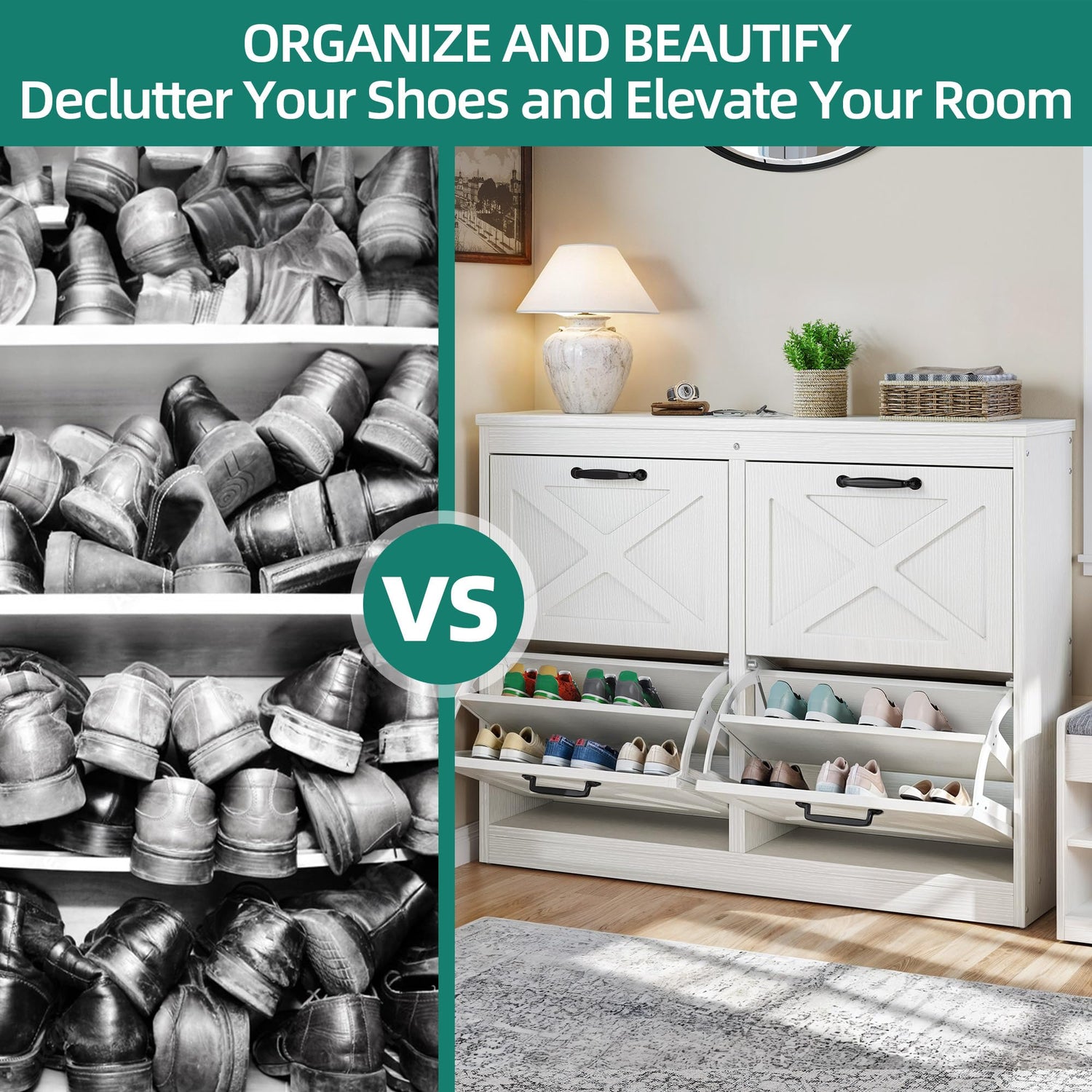 - Compact shoe cabinet: Explore the elegance of our hidden shoe cabinet with 4 flip doors. Ideal for entryways, hallways, living rooms, or porches, its talented design ensures impeccable organization, creating a roomy path