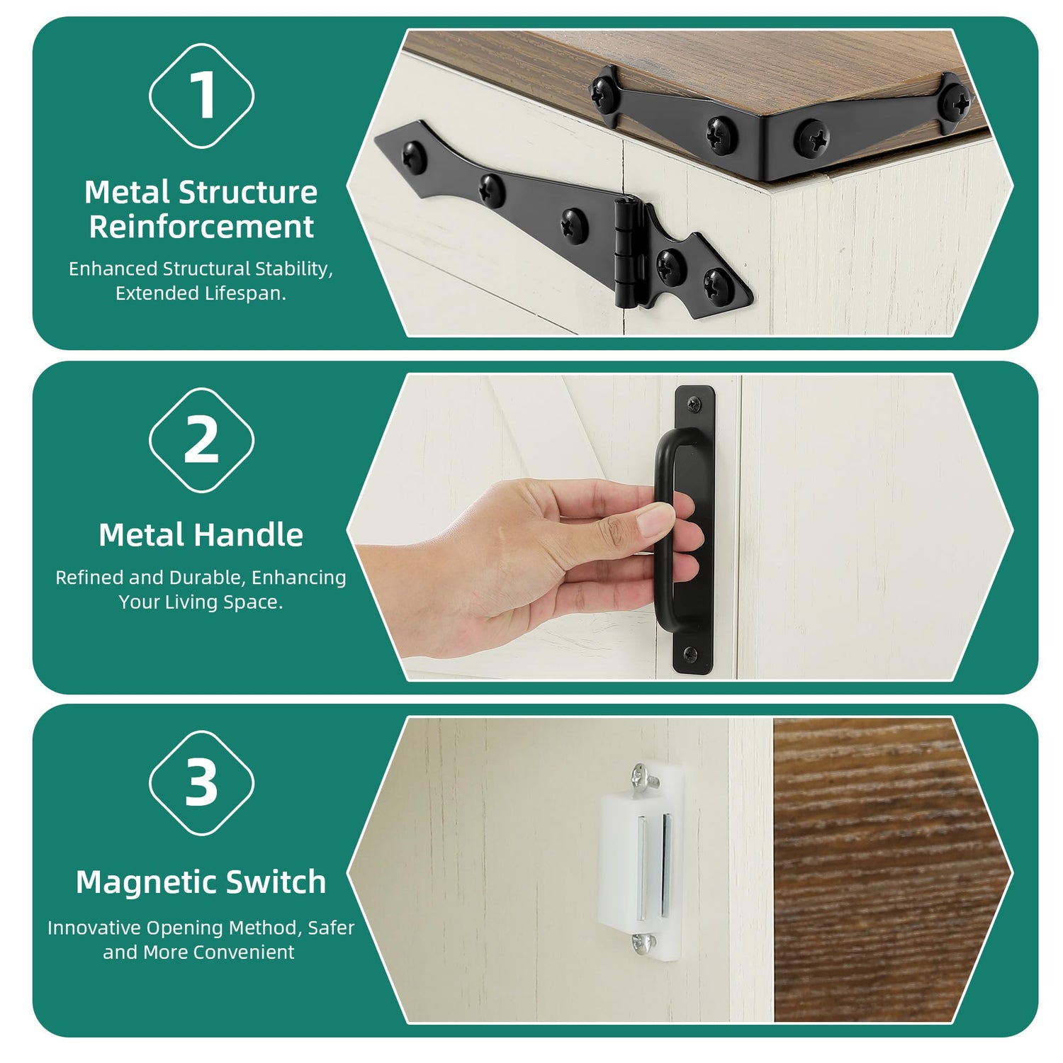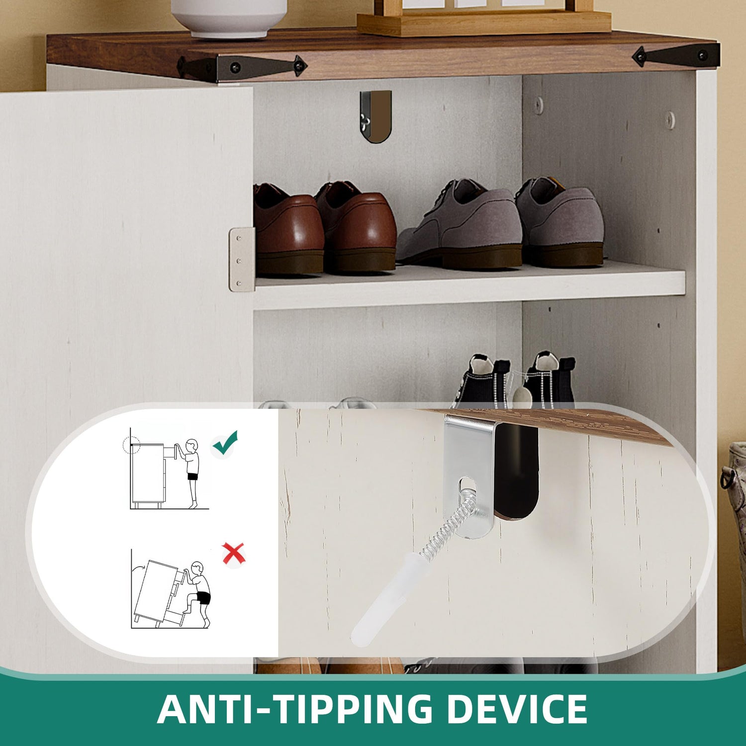 • Farmhouse Charm for Your Home: The arrow-shaped pattern & rustic iron corners give this entryway shoe cabinet a charming farmhouse feel. This shoe cabinet bench will instantly transform your entryway, making it a welcoming and cozy spot