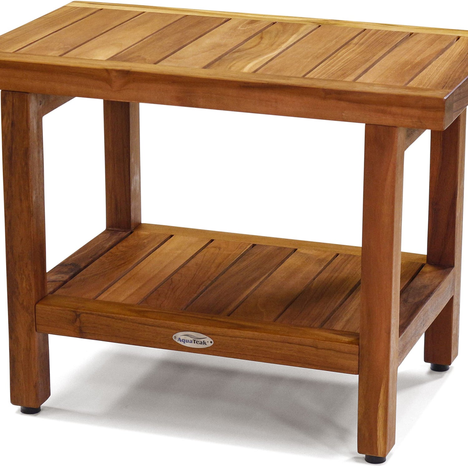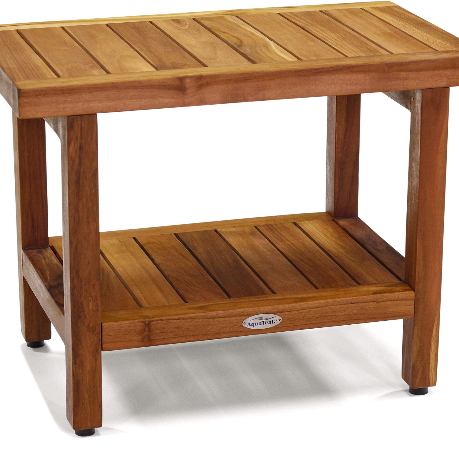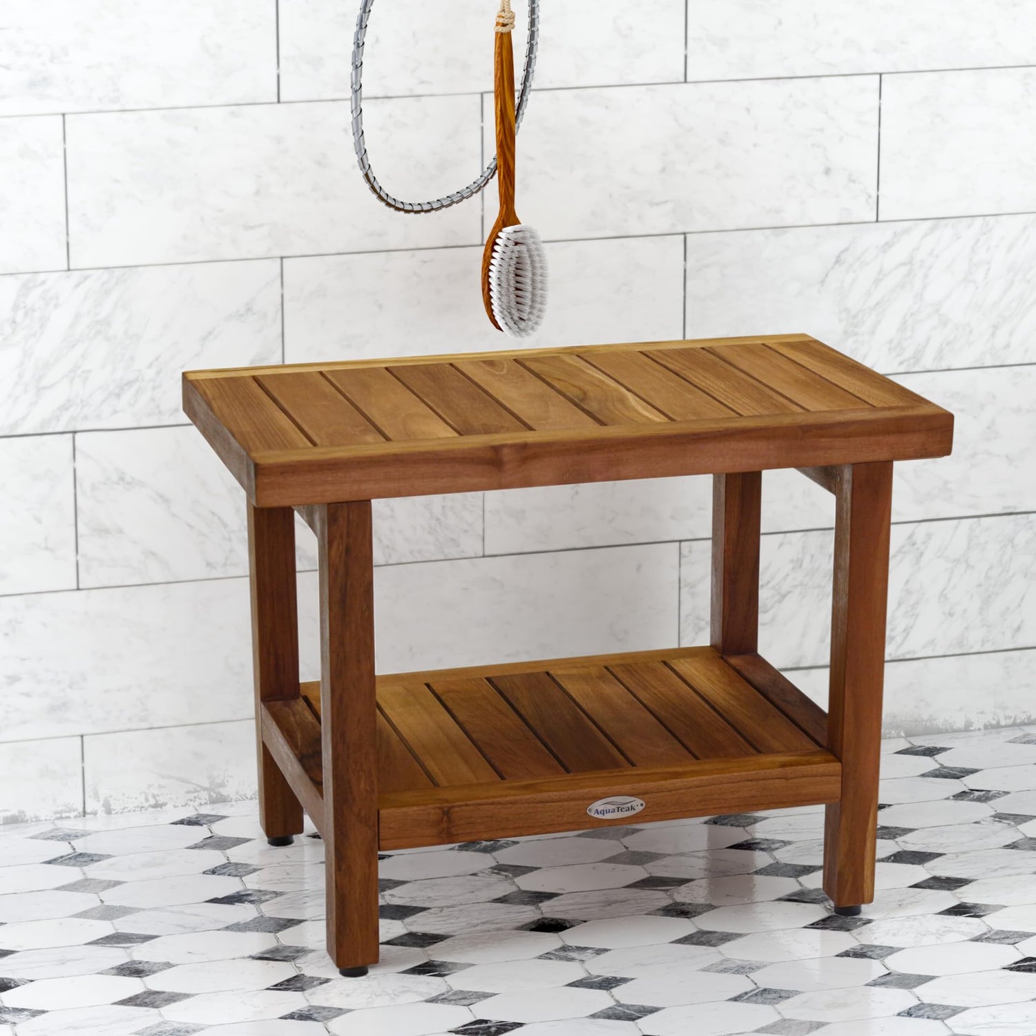 AquaTeak The Original 24" Spa Teak Shower Bench with Shelf