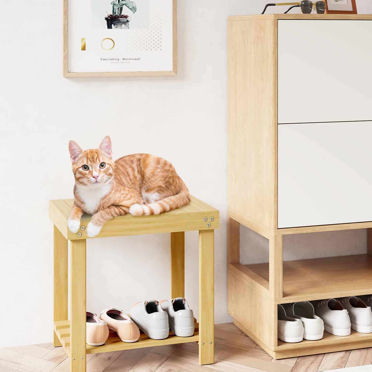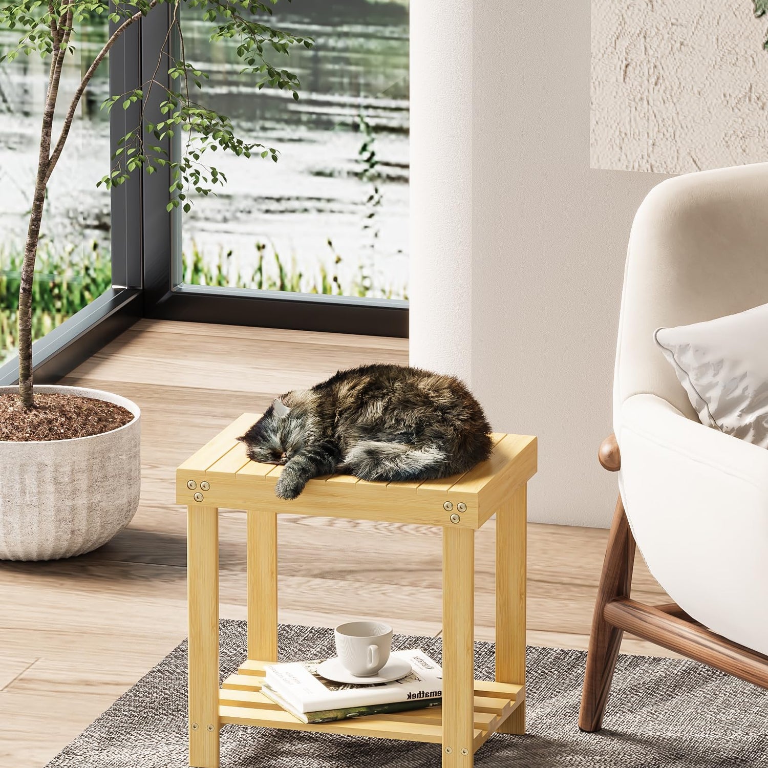 • Sturdy & Stable: No more wobbling annoyances here. With a robust bamboo frame and four non-slip feet, this bamboo stool holds up to 180 lb and supports steadily and firmly when you sit on
