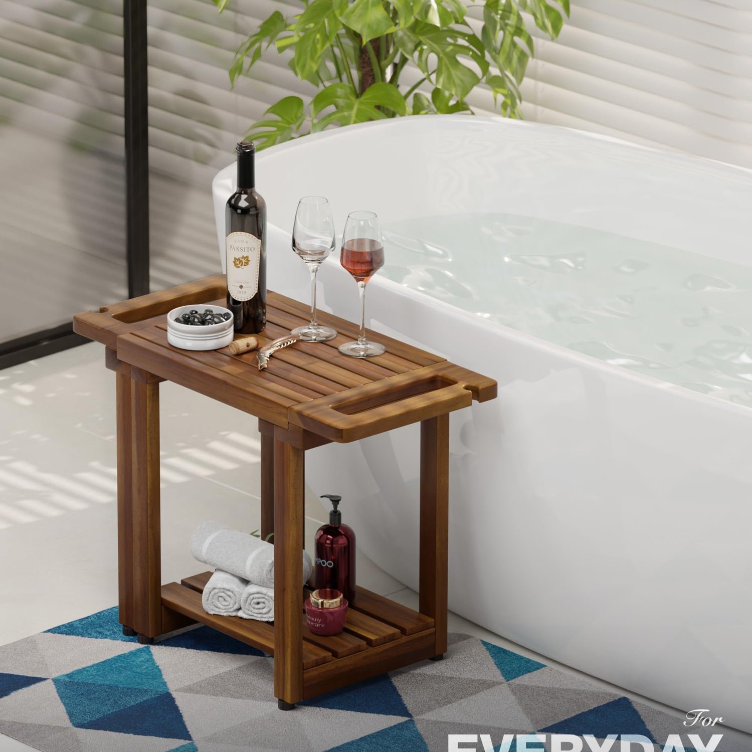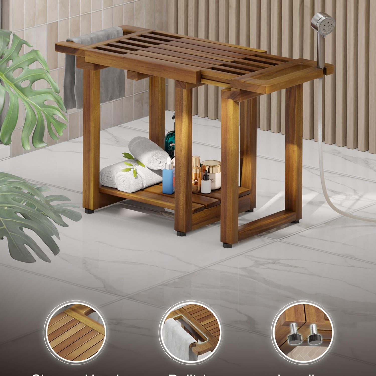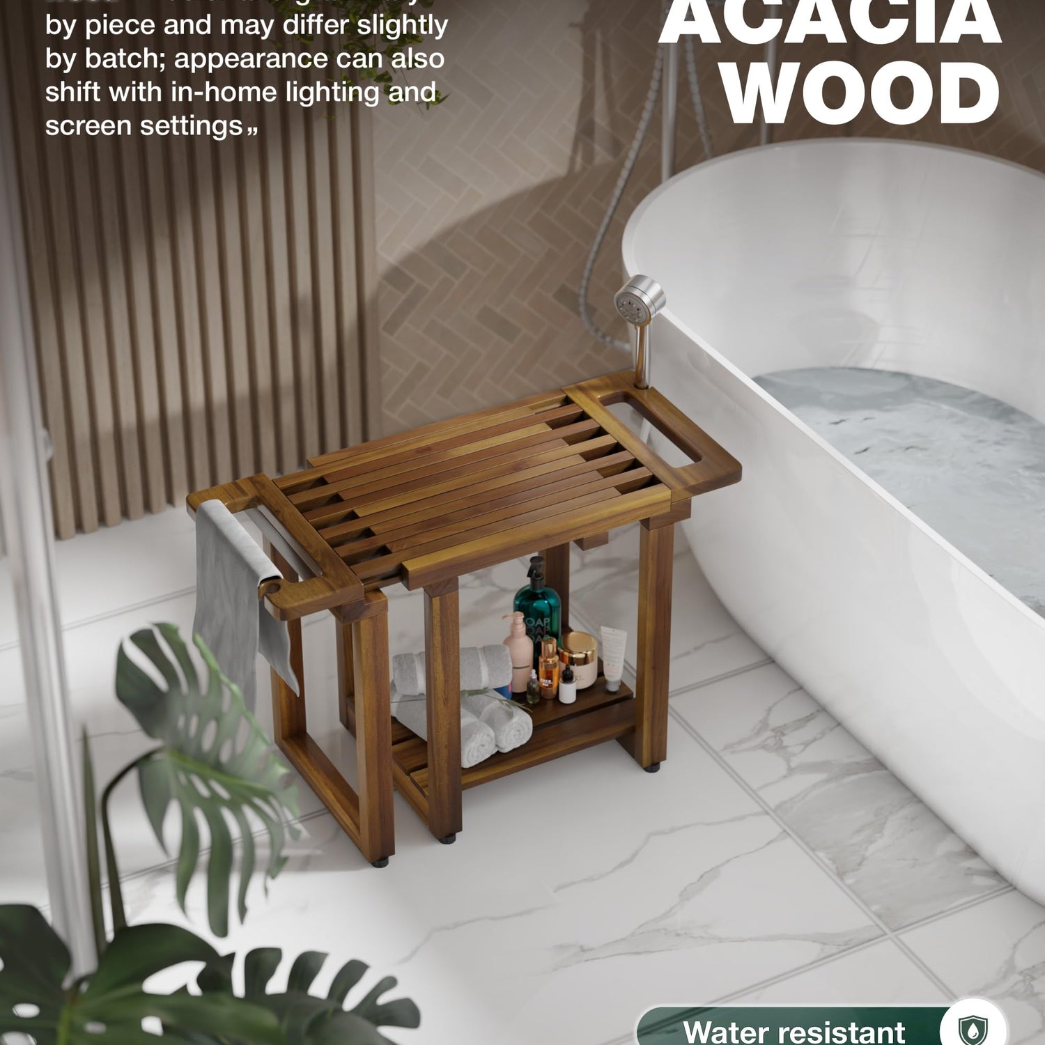 - πΏ Crafted from Premium Acacia Wood: Made from high-quality Acacia wood, this bench is naturally water-resistant and built to withstand humid environments. Its elegant wood grain adds a touch of style to any bathroom or bedroom. Acacia wood has natural color variation, so shower benches may appear darker or with more contrast than shown