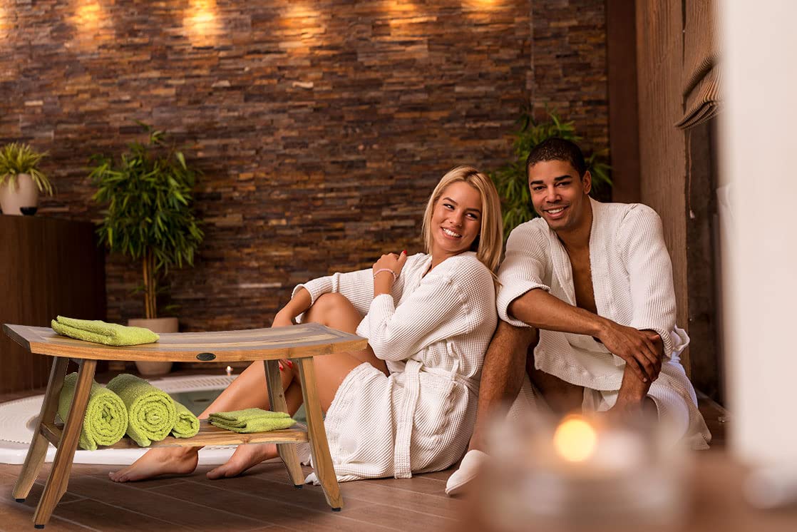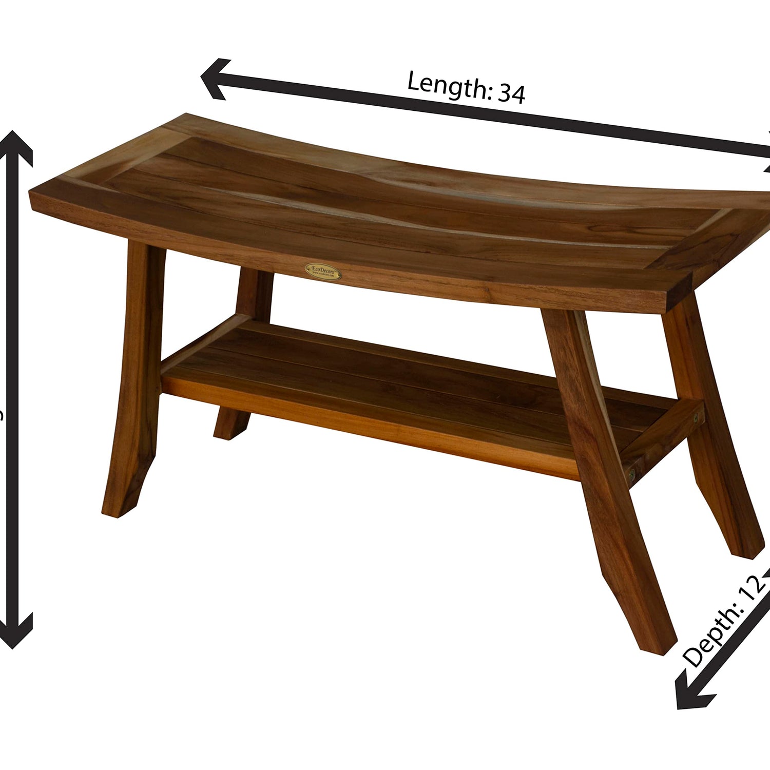 - Satori Teak Shower Bench: Transform your bathroom into a retreat with our 34 inch long spa bench. Made from 100% Indonesian plantation grown teak wood, this large teak shower bench offers exceptional durability, style, and water resistance.