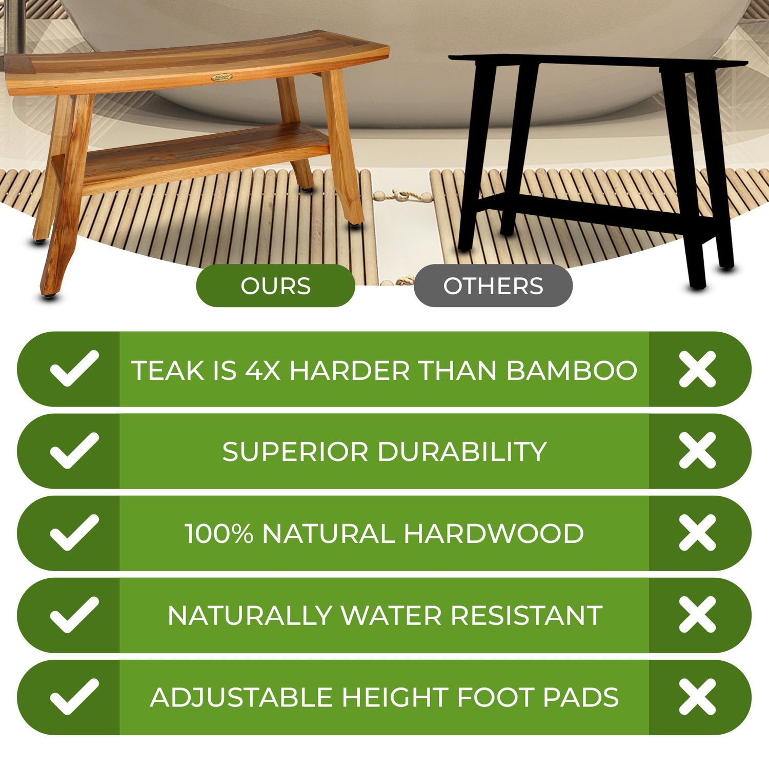 EcoDecors, 34 inch, Brown, Teak Shower Bench, Teak Bench Shower, Teak Bathroom Bench, Teak Wood Shower Bench, Shower Bench Teak, Shower Teak Bench