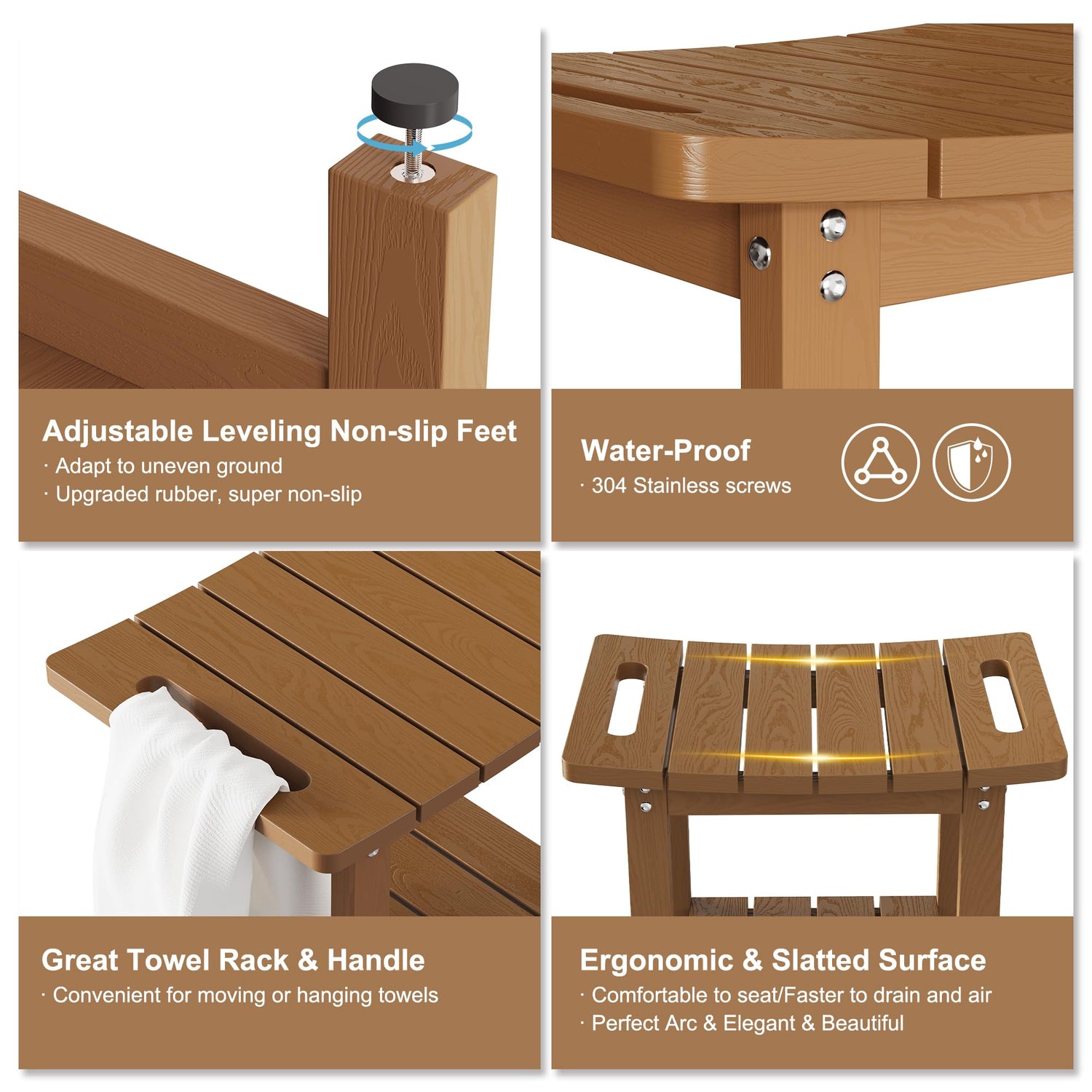 - 【Multipurpose Shower Seat & Chair】- Our shower bench can be applied to a variety of occasions. Perfect fit in Shower Stall / Major Bath / Stand Up Shower / Walk in Shower. Great corner table beside the Tub. Nice storage unit in Kitchen / Living Room / Bedroom / Yoga Room / Garage. Attractive outdoor table for Porch / Bench and Plant stand on Balcony.