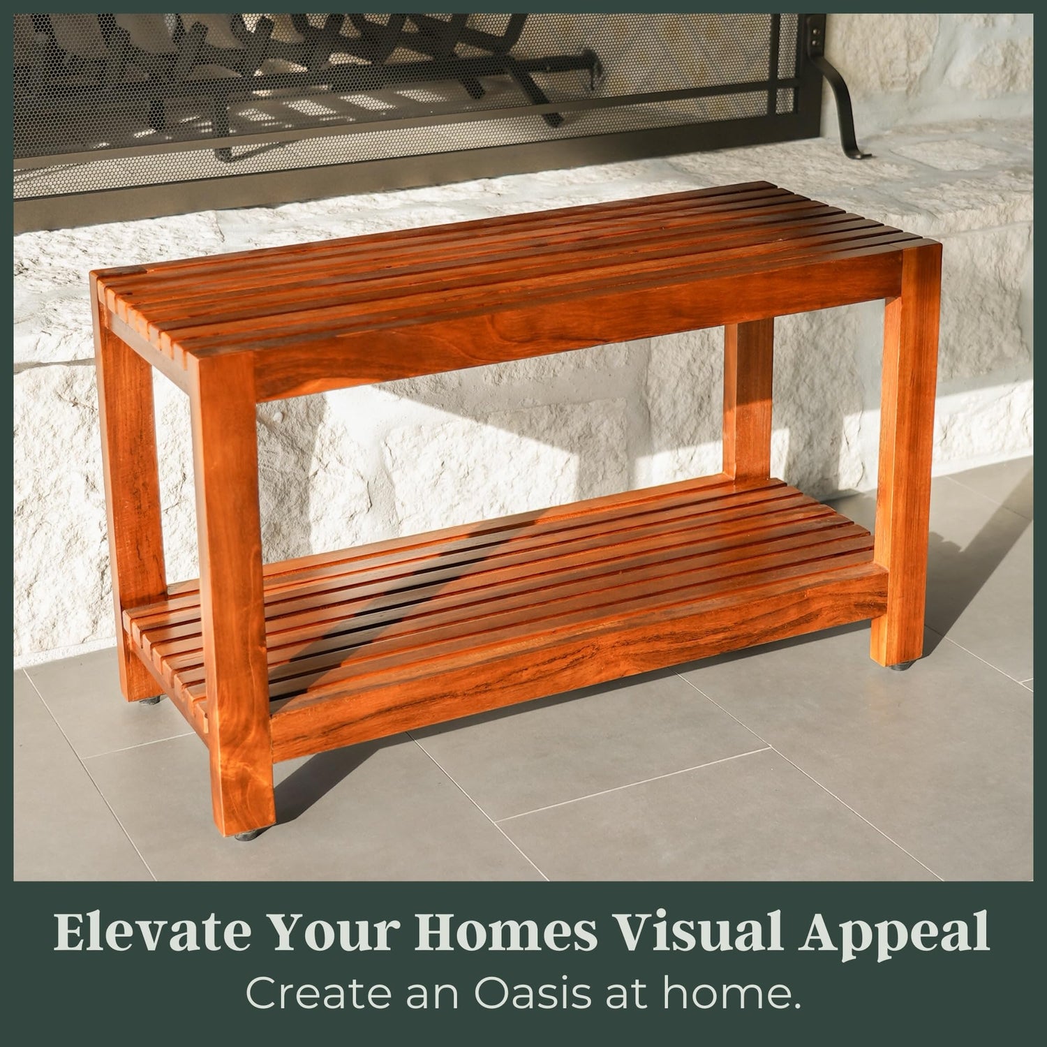 Teak Shower Bench - Fully Assembled 30 inch Shower Bench with Shelf | Water Resistant Shower Benches for Inside Shower to Sit on | Wooden Shower Bench for Spa, Garden, Living Room, Kitchen