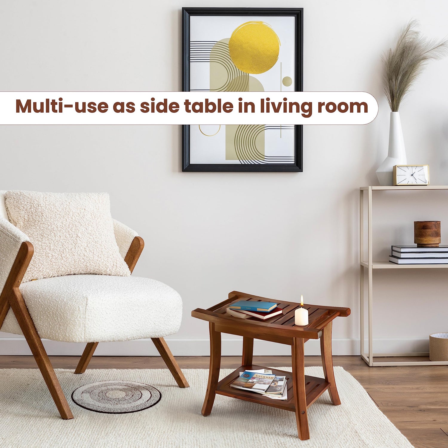 - Thoughtful Gift of Practicality: Our Shower Bench for Inside Showers, made from Acacia wood, makes for a thoughtful and functional gift. Its timeless design and durability make it a meaningful present for any occasion, elevating the recipient's space with sophistication.