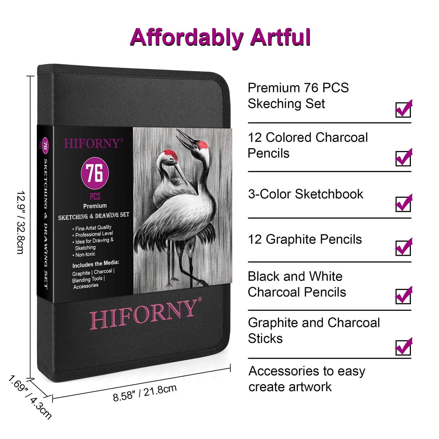 HIFORNY 76 PCS Drawing Set Sketching Kit,Sketch Pencils Art Supplies with Graphite,Charcoal,Blending Tools & Accessories,Portable Zippered Travel Case for Artists & Beginners