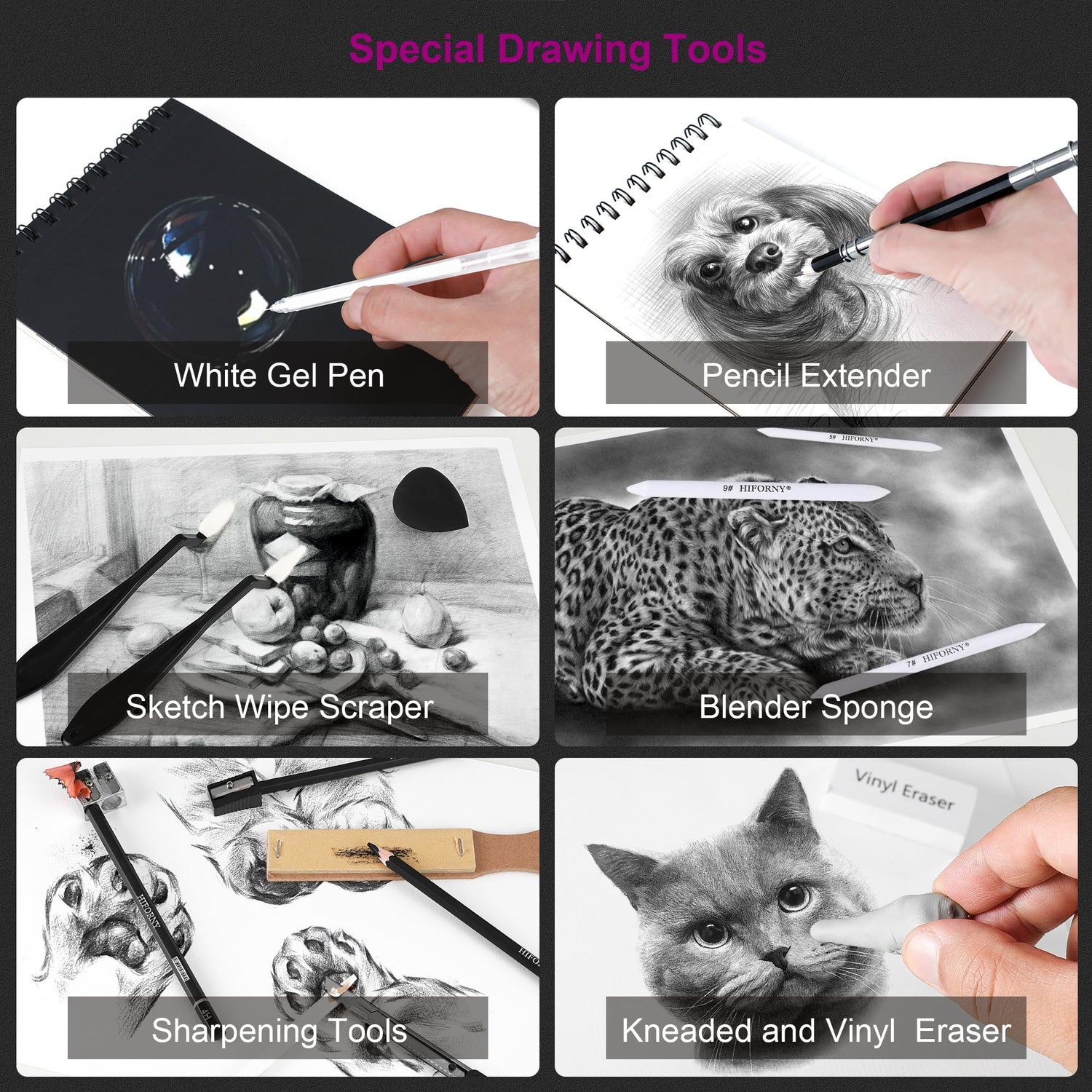 - Essential Drawing Tools: This versatile art set also includes 3 blending stumps,2 sketch scraper, 20 replacement heads, 1 white gel pen, 1 blender sponge, 1 pencil extender, 1 kneaded eraser, 1 vinyl eraser, 2 sharpeners, 1 sandpaper blockand 1 art knife—everything you need for detailed work and creative exploration. Great for both beginners and professional artists.