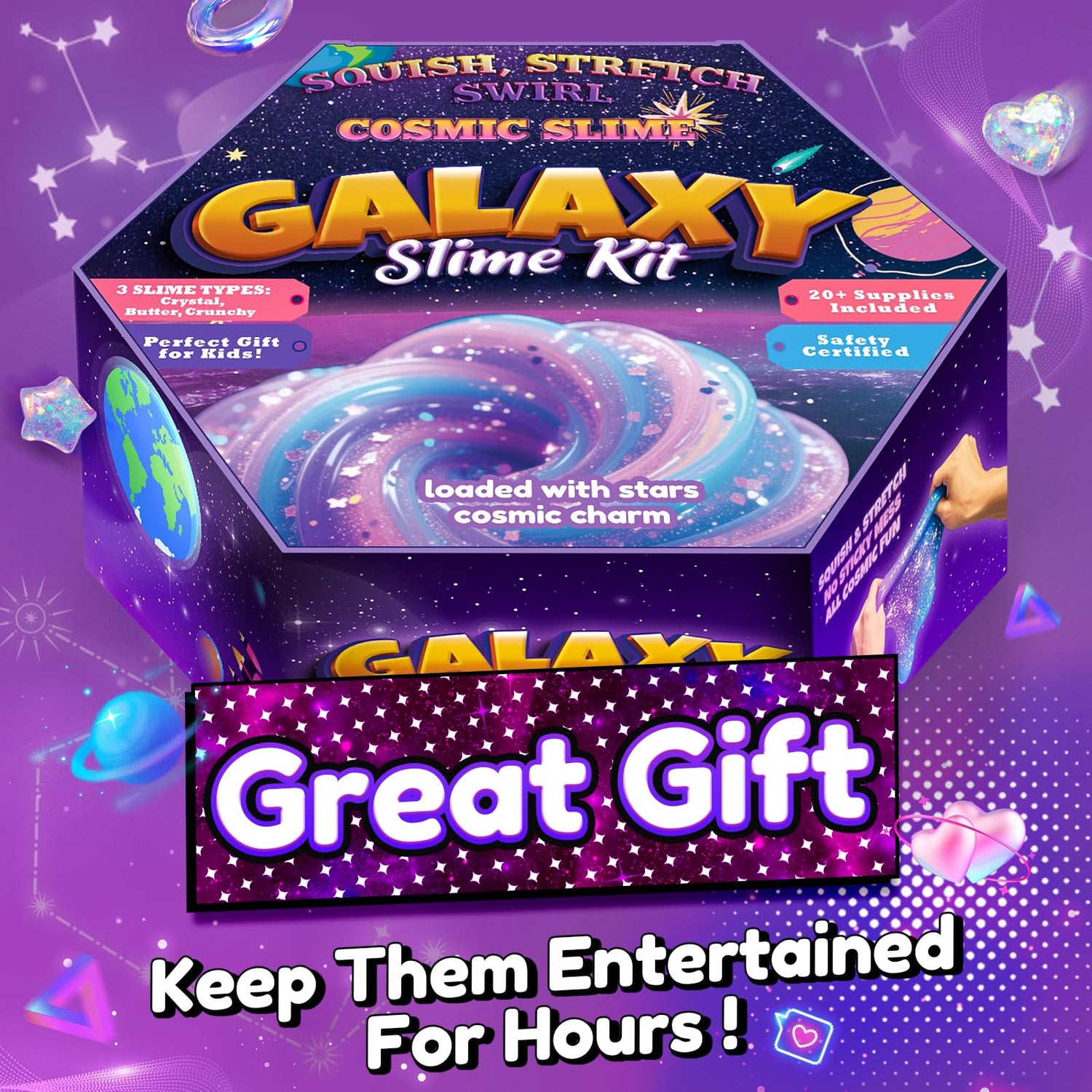 - Perfect Gift: Ideal for Christmas, birthdays, Halloween, Easter, Thanksgiving, or party favors—great as bag goodies, class rewards, treats for students. With eye-catching hexagonal starry packaging, it’s perfect for gifting to your kids, nieces, nephews, or young slime fans!