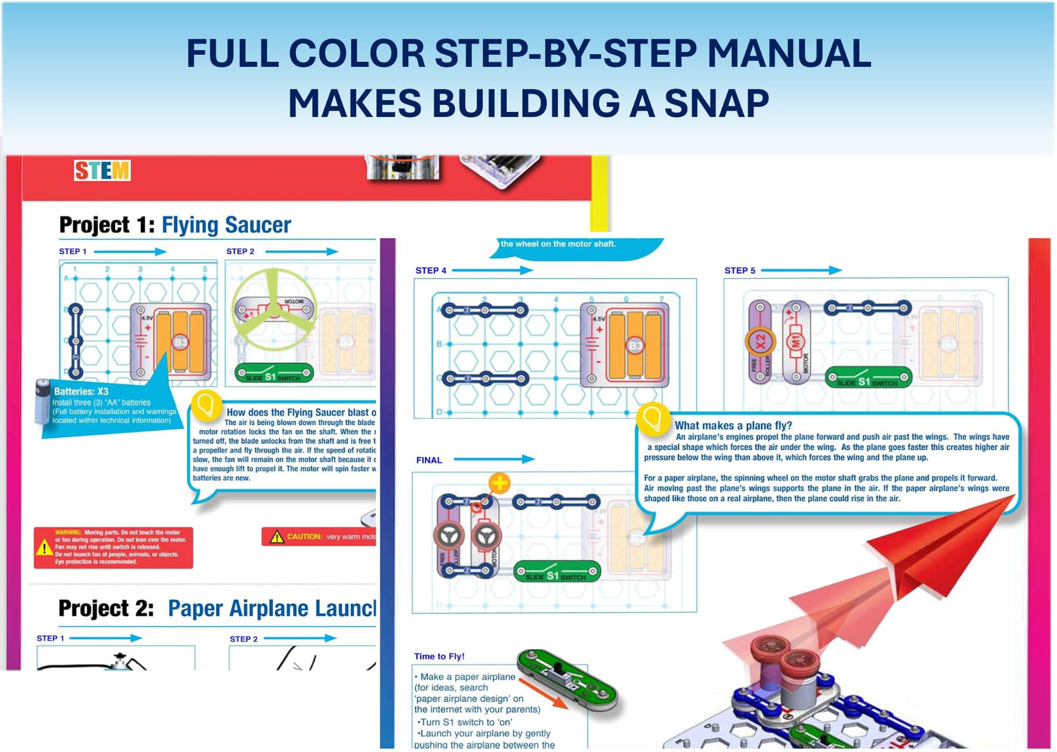 - How does a plane fly? How does electricity work? How do you create and launch paper airplanes? How does air pressure impact aerodynamics? Five projects provide hours of play, helps kids understand STEM and how the world works. FLIGHT DECK was designed to allow kids to discover the science of electricity, physics and provide hours of play. FLIGHT DECK includes easy to follow directions that allow kids to work independently, build confidence. It's the ultimate STEM toy!