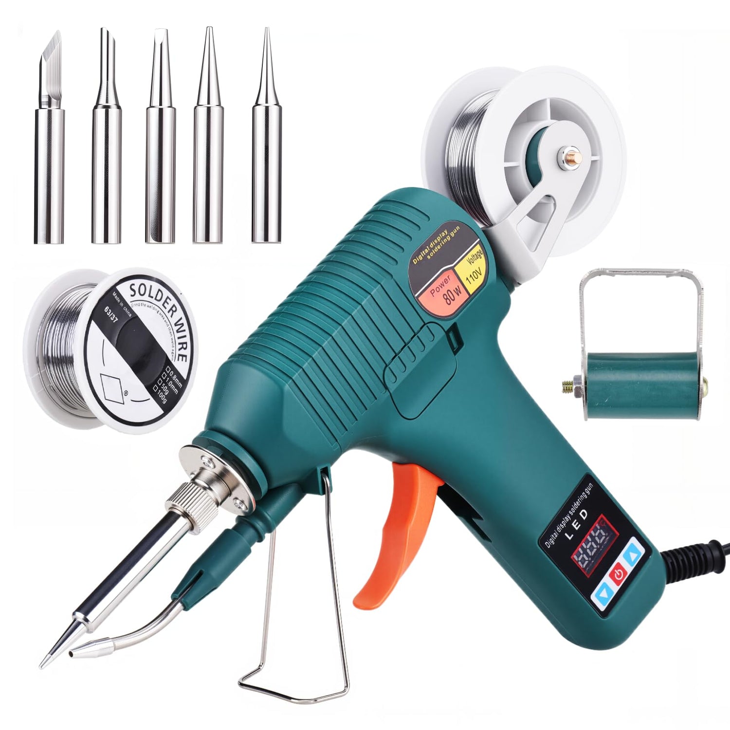 - 【LED Display & Adjustable Temp】This 80W 110V digital display soldering gun of soldering iron kit can precisely adjust the temperature within the range of 180-520°C for specific solder iron welding tasks. Our digital solder gun comes with a memory function, so it will display the temperature you previously adjusted the next time you turn it on. The non-slip handle of soldering gun conforms to ergonomics, ensuring comfortable operation and making it the best assistant for portable soldering iron.
