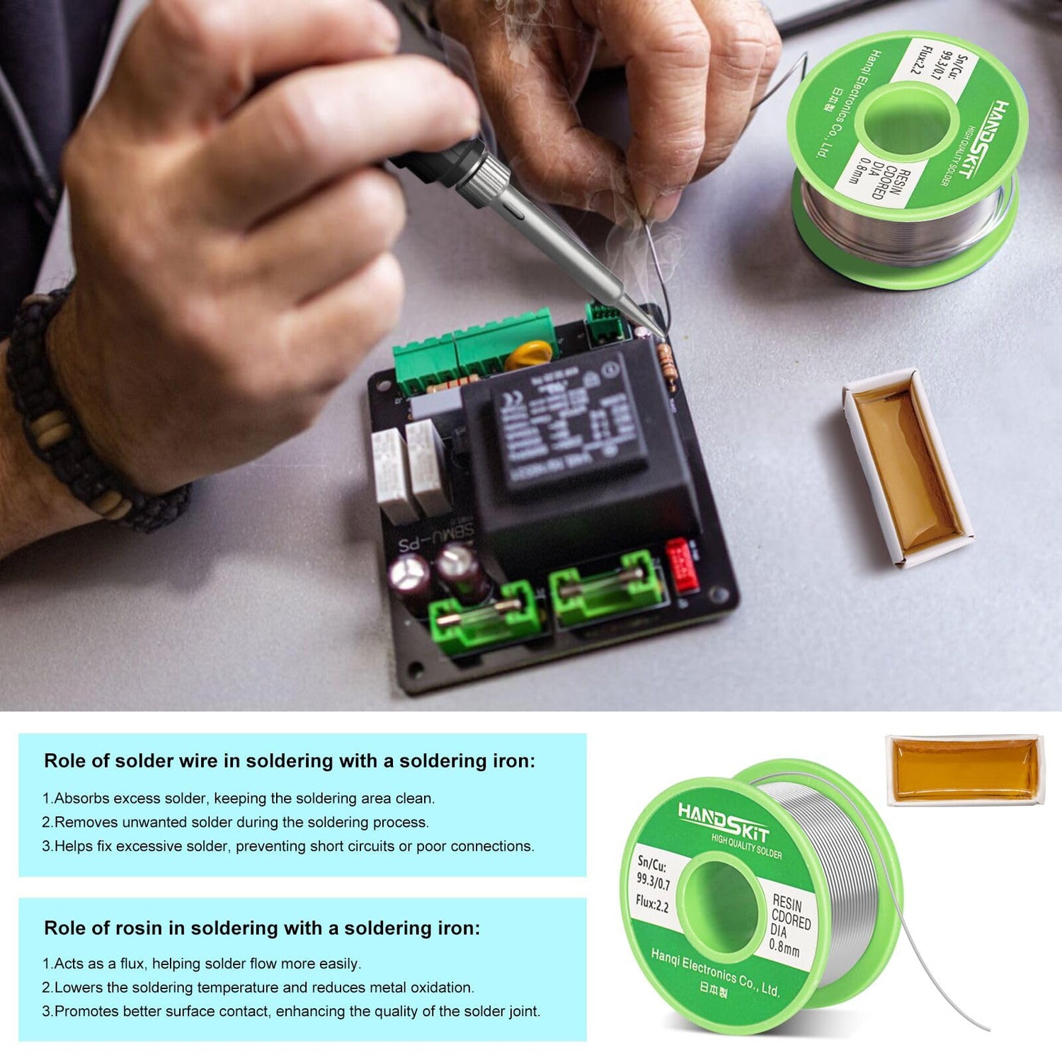 The HANDSKIT soldering iron combines precise temperature control, fast heating, and ease of use. Ideal for small electronics, PCB boards, smartphone and appliance repairs, it suits both beginners and professionals seeking safe and efficient soldering.