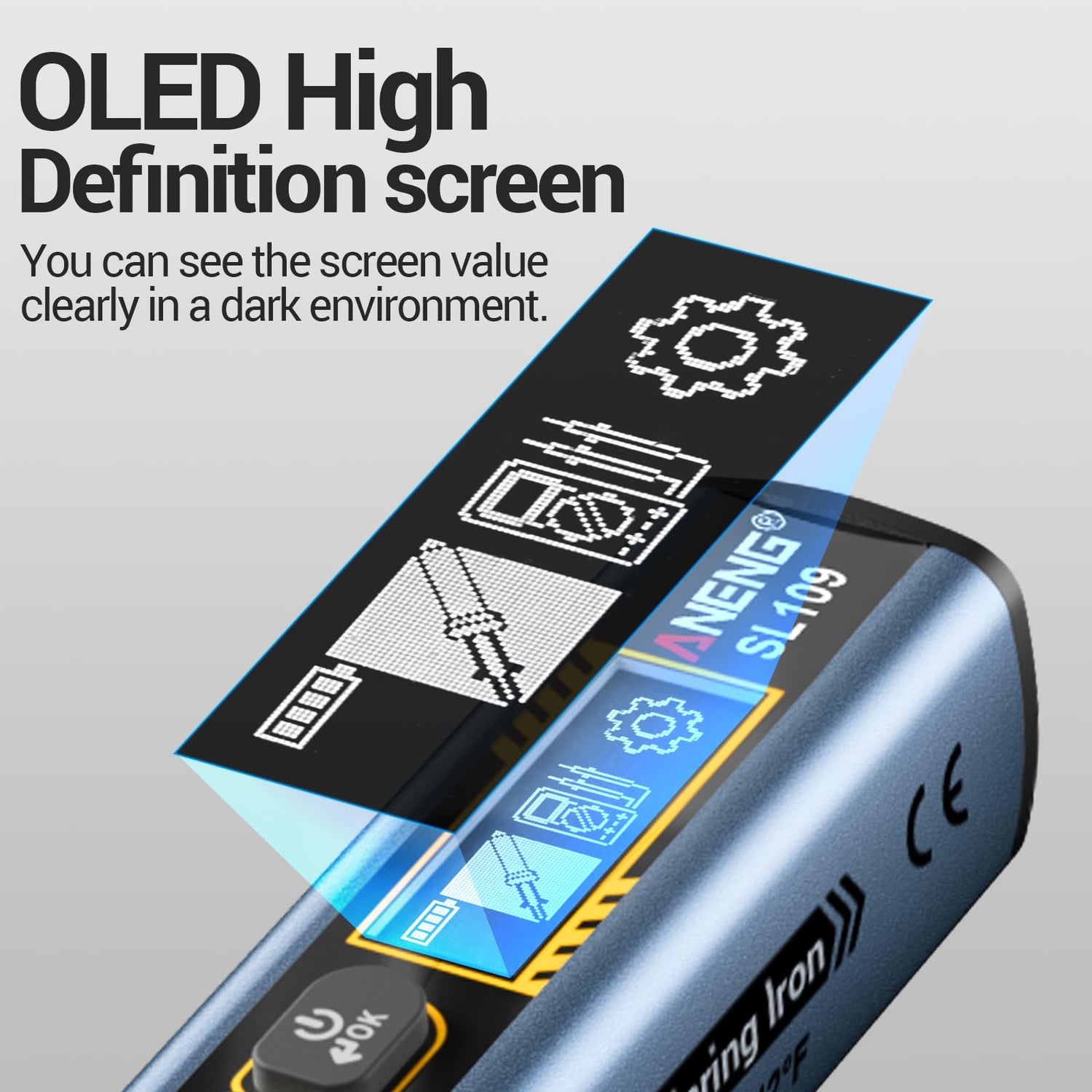 - User - Friendly & Safe Design:The smart soldering iron cools from 450℃ to a safe temp within 30s when idle, preventing damage from prolonged high heat and ensuring stable continuous operation.A red indicator shows in the top - left of the screen on low battery.The LED display tracks temp and settings in real - time.With a Type - C port,it supports power banks,PD/QC fast charging,and operation while charging, meeting long - term uninterrupted use needs.